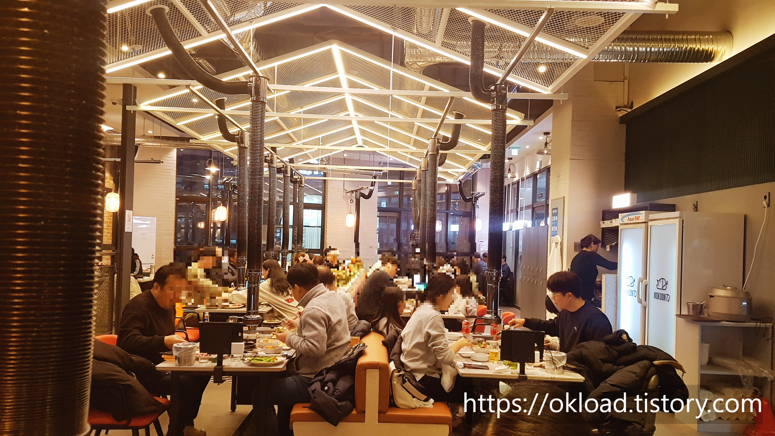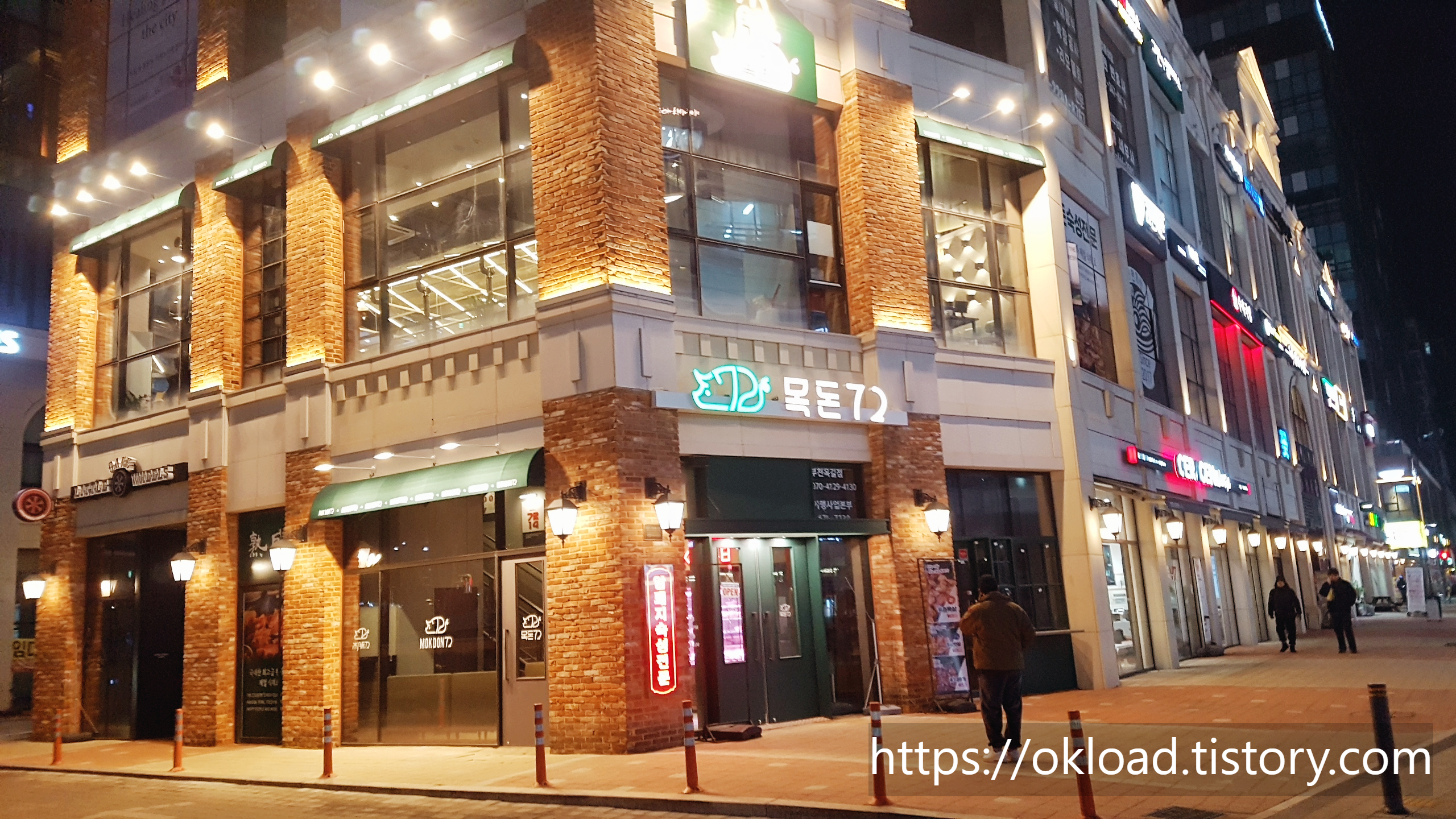 우리 가족의 단골음식점이 되버린 목돈72 옥길점이다. 전반적으로 상가건물 전체가 이국적이면서도 은은한 조명들이 잘 조화를 이룬 현대적이고 감성적인 모습이다.
