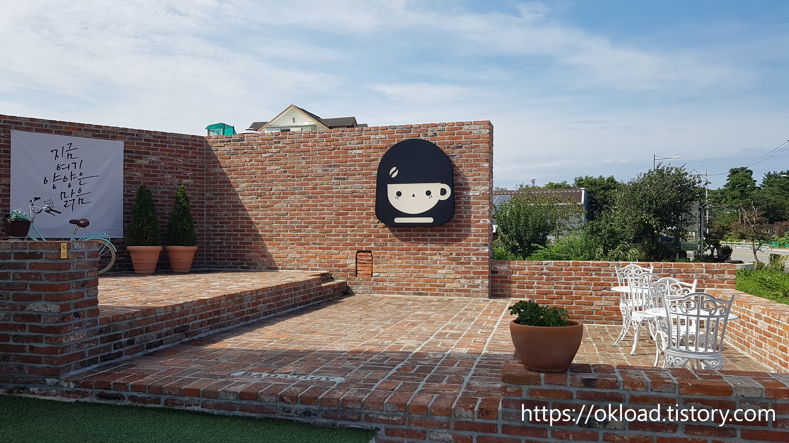 또한 카페바다지기는 야외에서 음료를 마실 수 있는 공간이 넉넉하다. 커피잔, 찻잔받침, 커피콩을 조합해서 귀엽고 참신한 바다지기공방카페의 캐릭터 마스코트는 자체 캐릭터 브랜딩을 잘 한 사례로 보인다.
