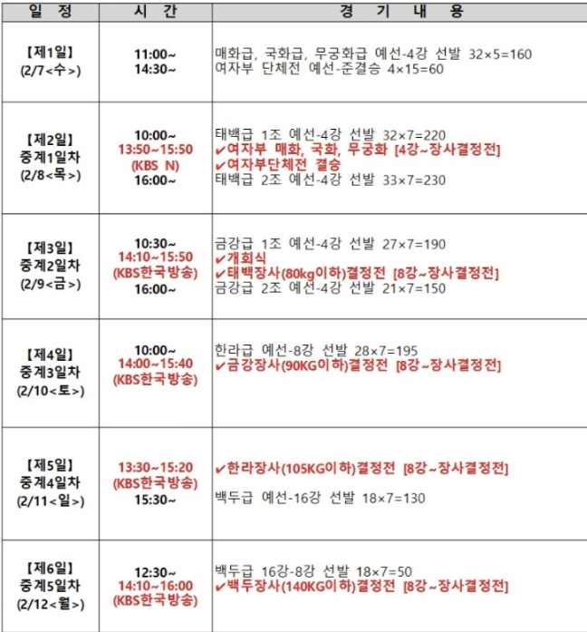 설날 천하장사 씨름경기 경기일정
