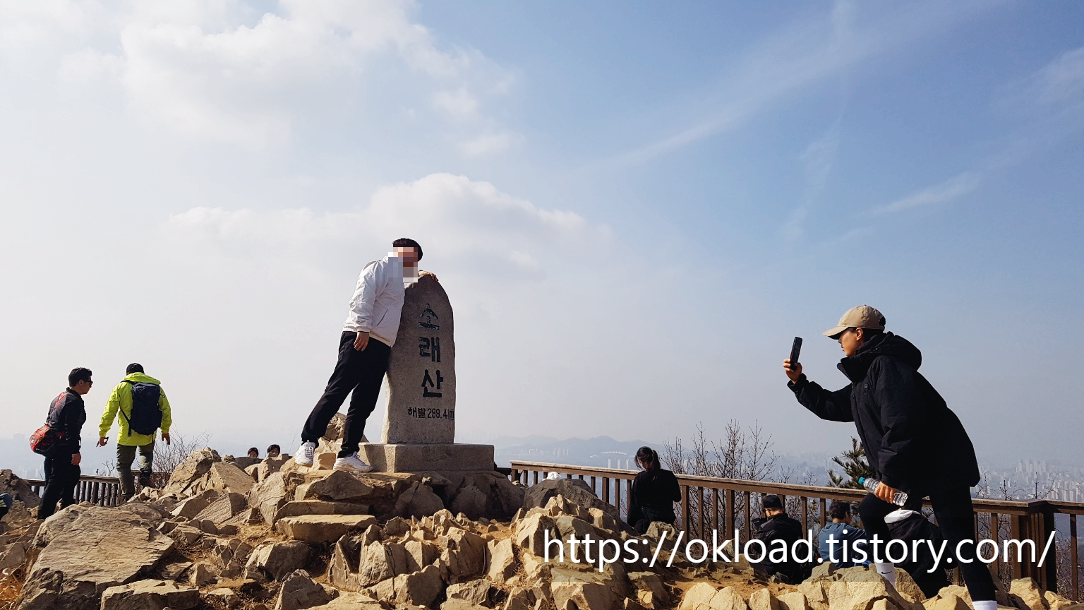 주말이라 그런지 정상에 머무르는 사람들이 많았고, 높이 299미터 '소래산'이 새겨진 비석 앞에서 기념사진을 찍기 위해서 줄을 서서 기다려야 했었다.