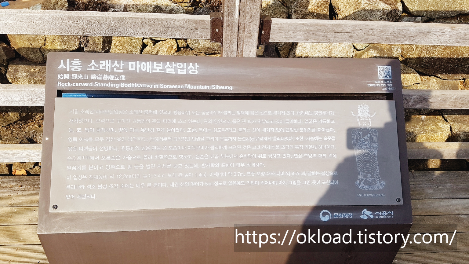 대한민국 보물로 지정된 시흥시 소래산 마애보살입상이다. 고려시대 소래산 중턱에 있는 장군바위(병풍바위)에 새겨진 높이 15m에 다른 거대한 불상이다.