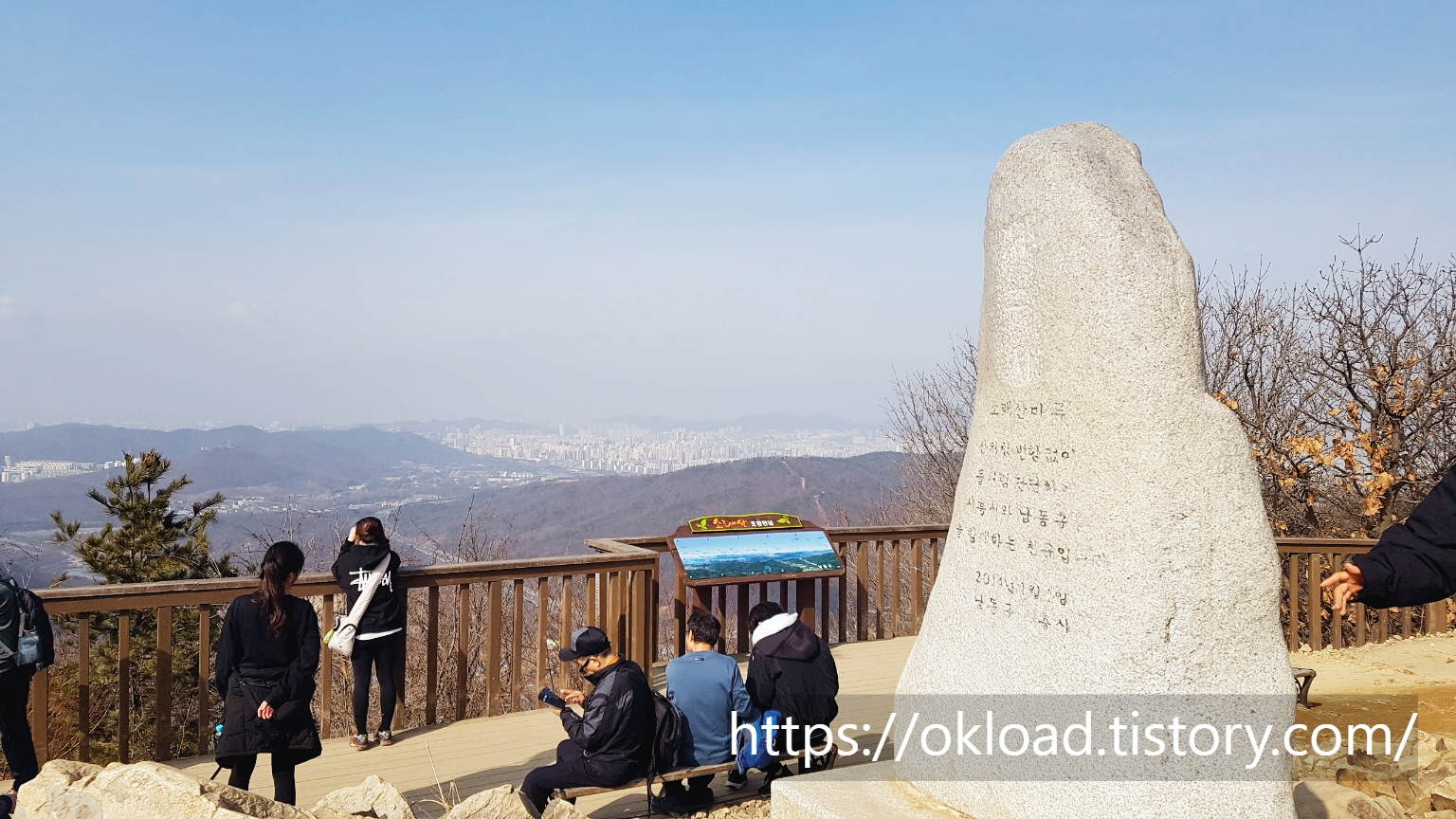 정상에서 서울시, 부천시, 광명시, 인천시, 시흥시가 한눈에 보였고, 멀리는 관악산까지도 보였다.