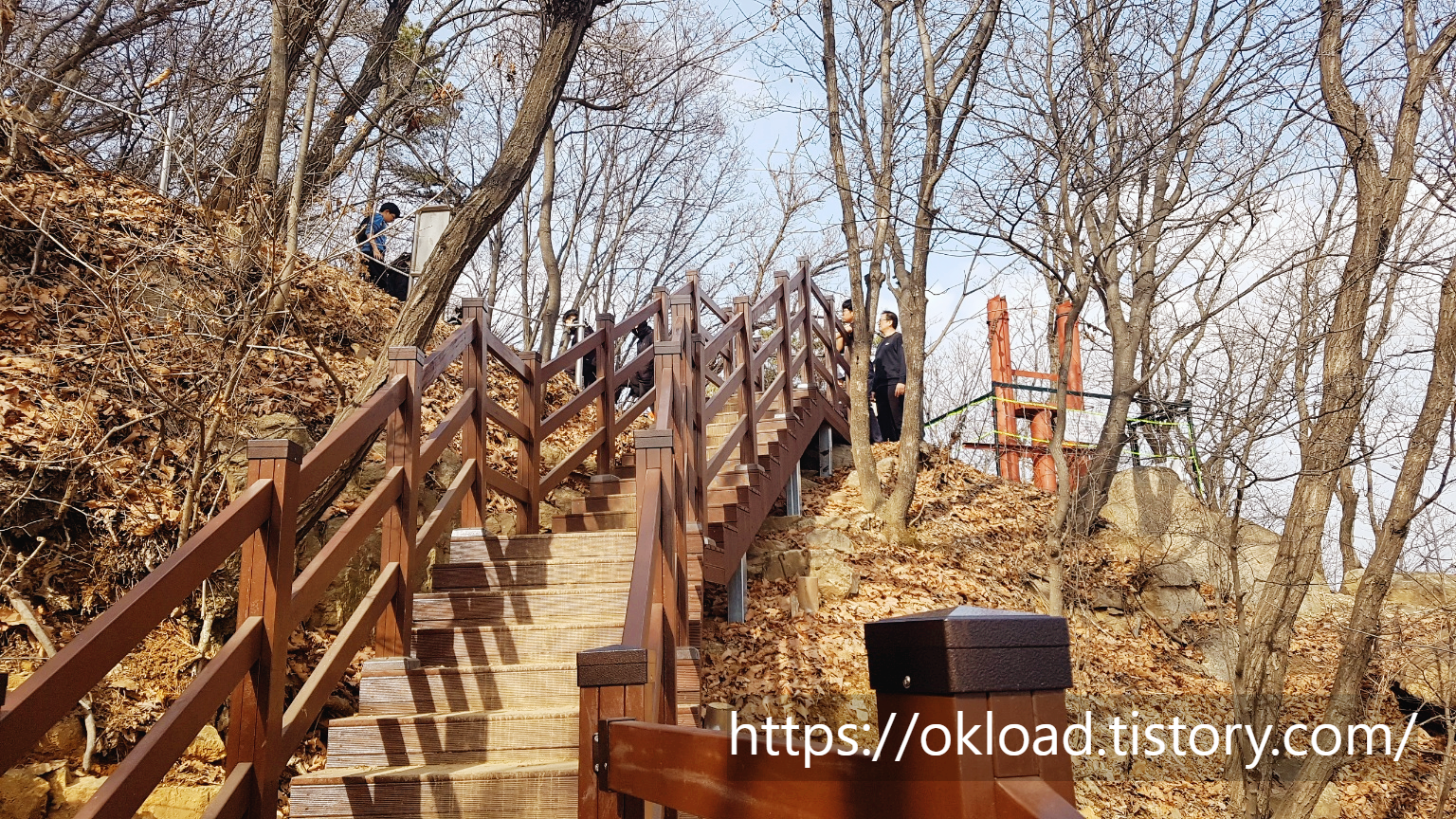 정상부근에 가까워지기 전까지는 등산로가 잘 정비되어 있고, 사진처럼 나무데크 계단길도 곳곳에 마련되어 있다.