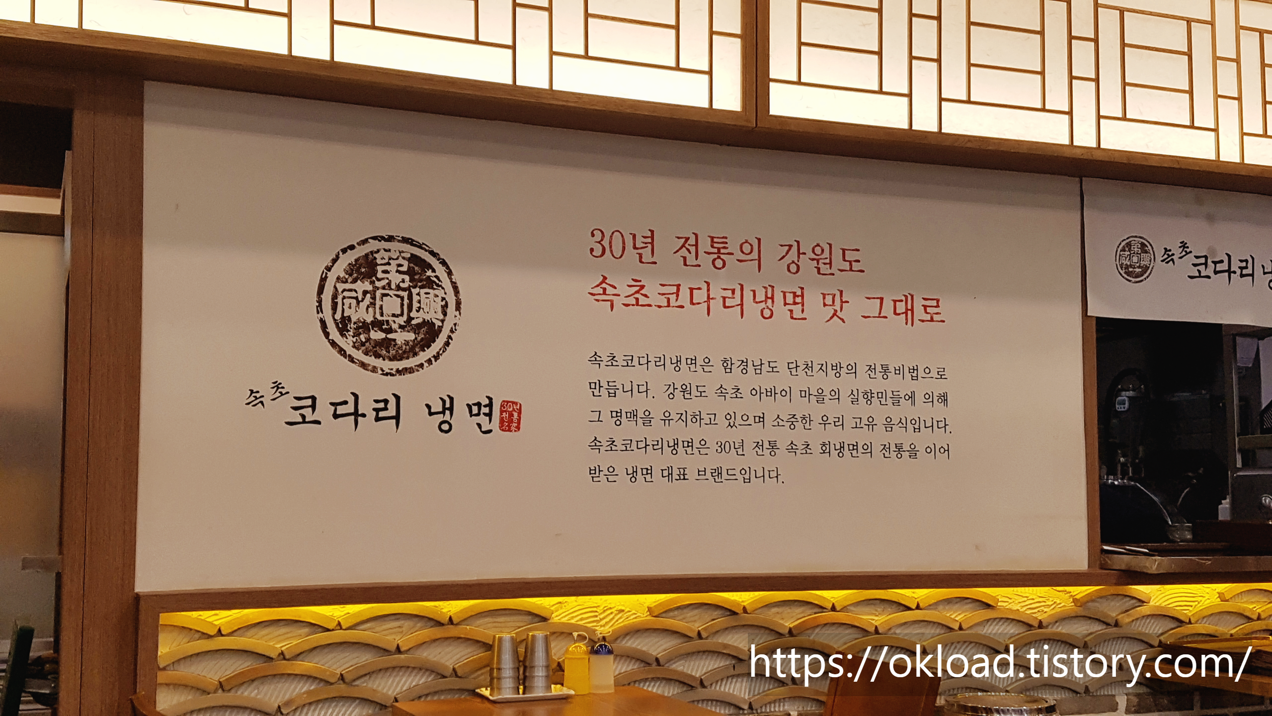 30년 전통의 강원도 속초코다리냉면이다. 속초코다리냉면은 함경남도 단천 지방의 비법으로 만든다.