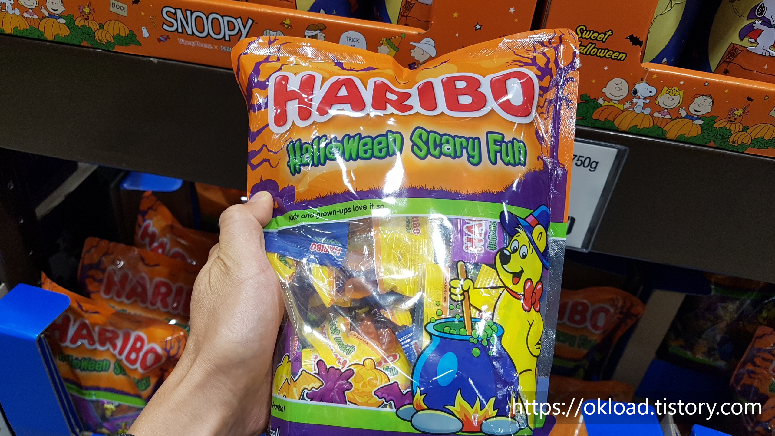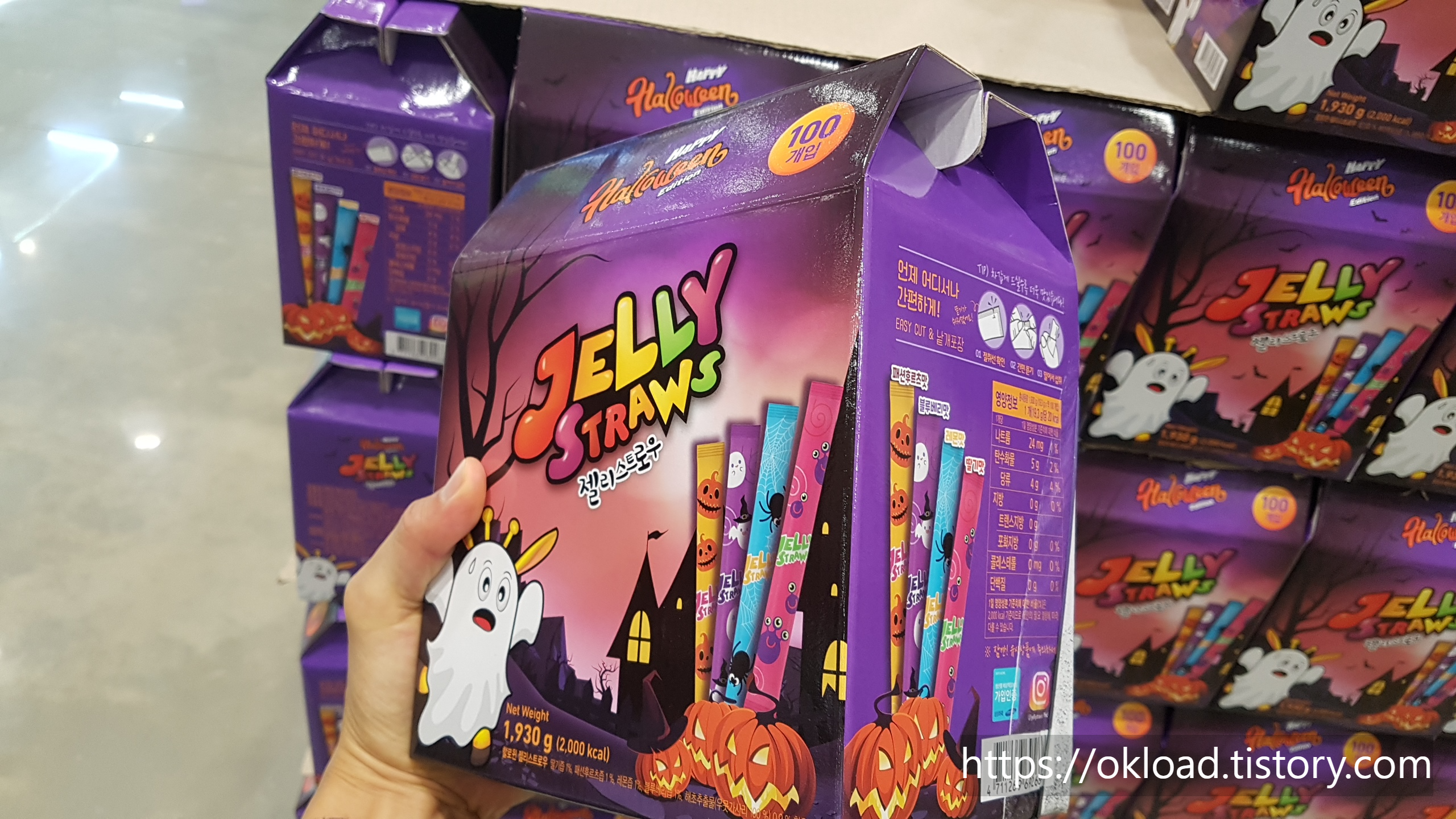 할로윈 기념 특별 판매하는 하리보(HARIBO)와 젤리스트로우(Jelly Straws) 등 할로윈데이를 겨냥해서 외국 제과업체에서 판매하는 사탕과 젤리다. 우리나라 제과업체에서 대목으로 보는 기념일이 발렌타인데이, 화이트데이, 빼빼로데이, 수능시험 정도인데, 아무리 판매량이 급증하는 이벤트 데이라 해도 위 사진에서 보이는 하리보와 같은 외국 제과 브랜드처럼 포장까지 기념일을 테마로 제작하지는 않는다.