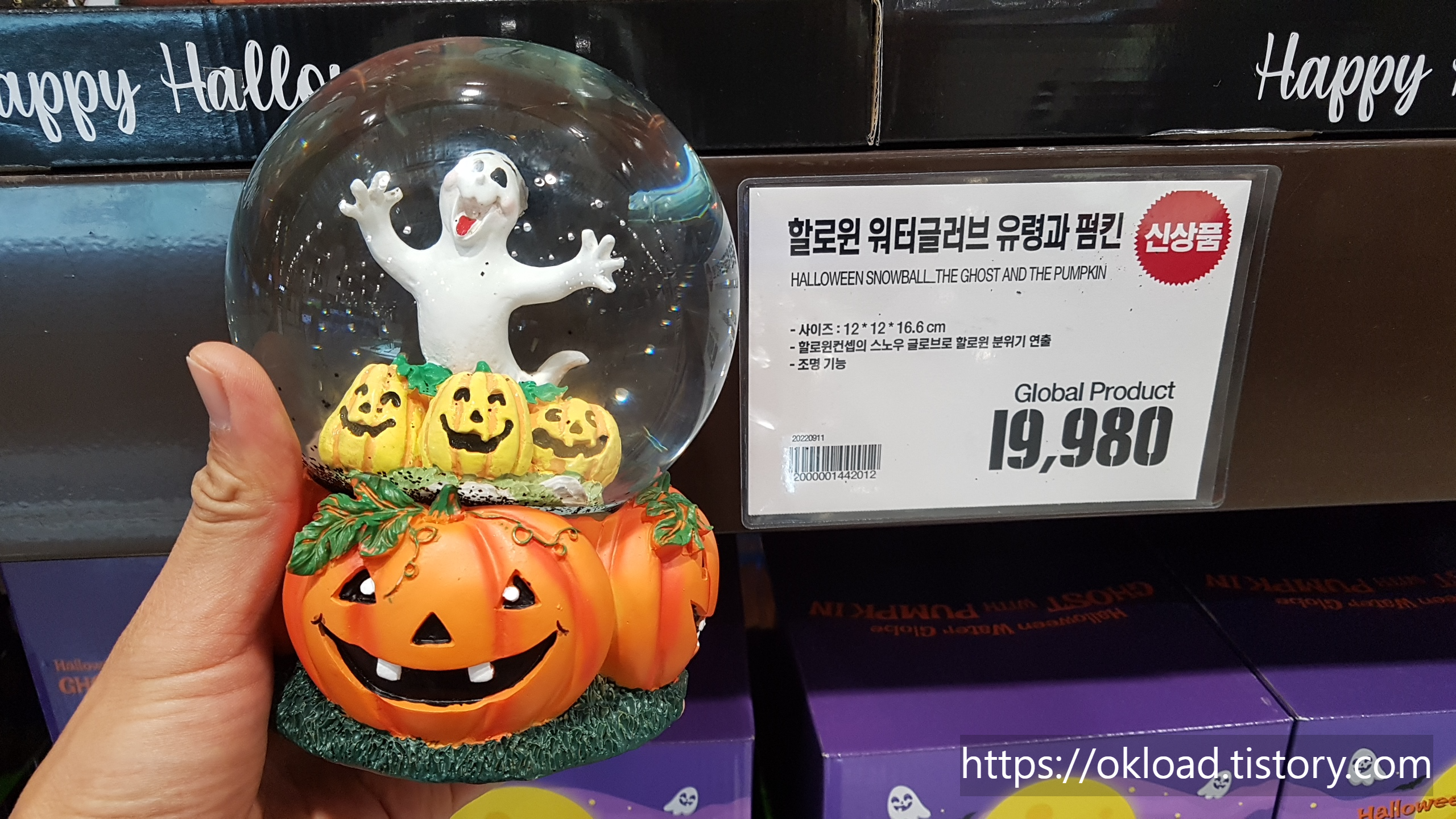 크기, 가격, 디자인 등 종합했을 때 가장 마음에 들었던 할로윈소품 '할로윈 워터글러브 유령과 펌킨'이다. 가격은 19,980원으로 사이즈는 12*12*16으로 조명으로도 사용할 수 있다. 괴기스럽기보다는 귀여운 호박과 유령이다. 할로윈을 기념하여 선물용으로 구입하기에도 적절해 보였다.