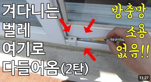 실제 방충망에 생각 구멍이나 찢어진 틈보다는 창틀과 창틀 사시에 틈을 통해서 실내로 모기와 벌레가 들어오는 경우가 훨씬 많다.