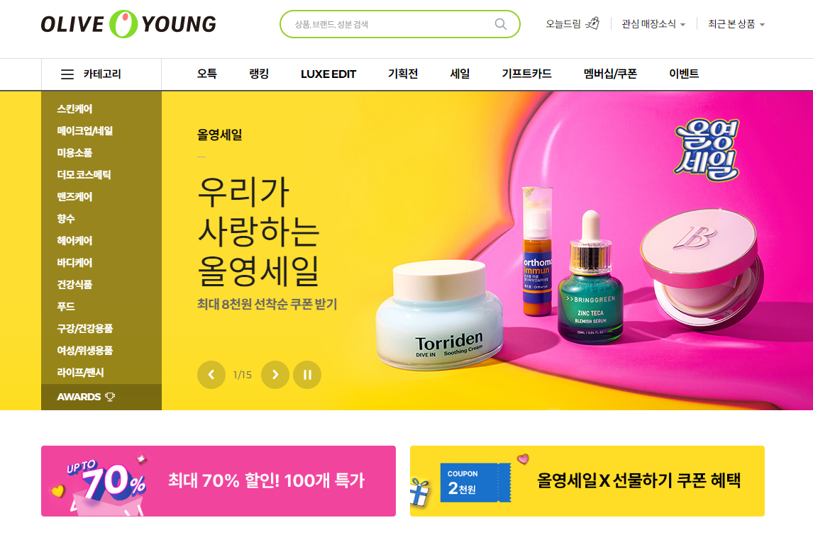 올리브영 홈페이지 쇼핑몰에 들어가면 자세한 세일정보를 확인할 수 있다.