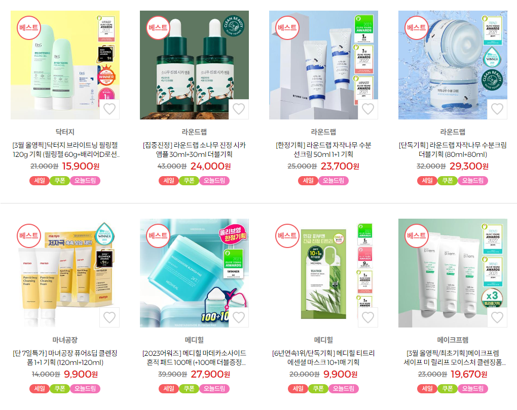 올리브영 세일 화장품 품목 가격 (일부)