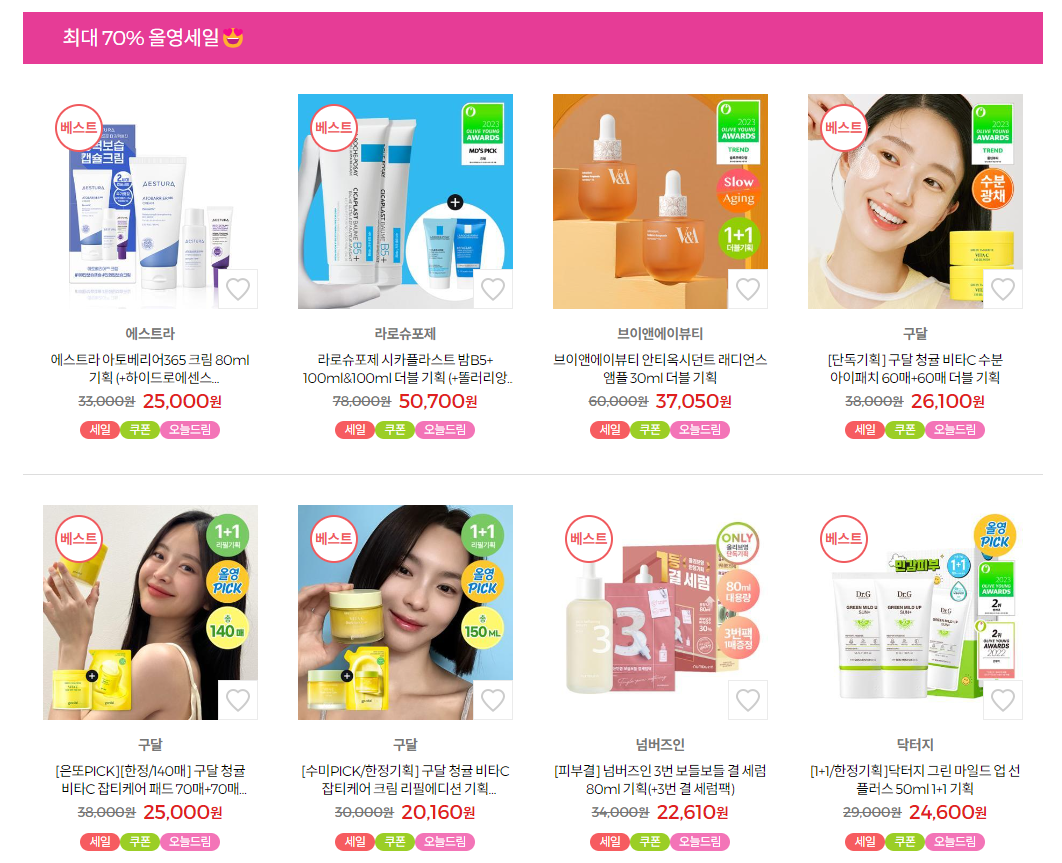 단, 7일 간만 최대 70% 세일하는 올리브영 세일이 어제오늘 포털 검색량이 뜨겁다.