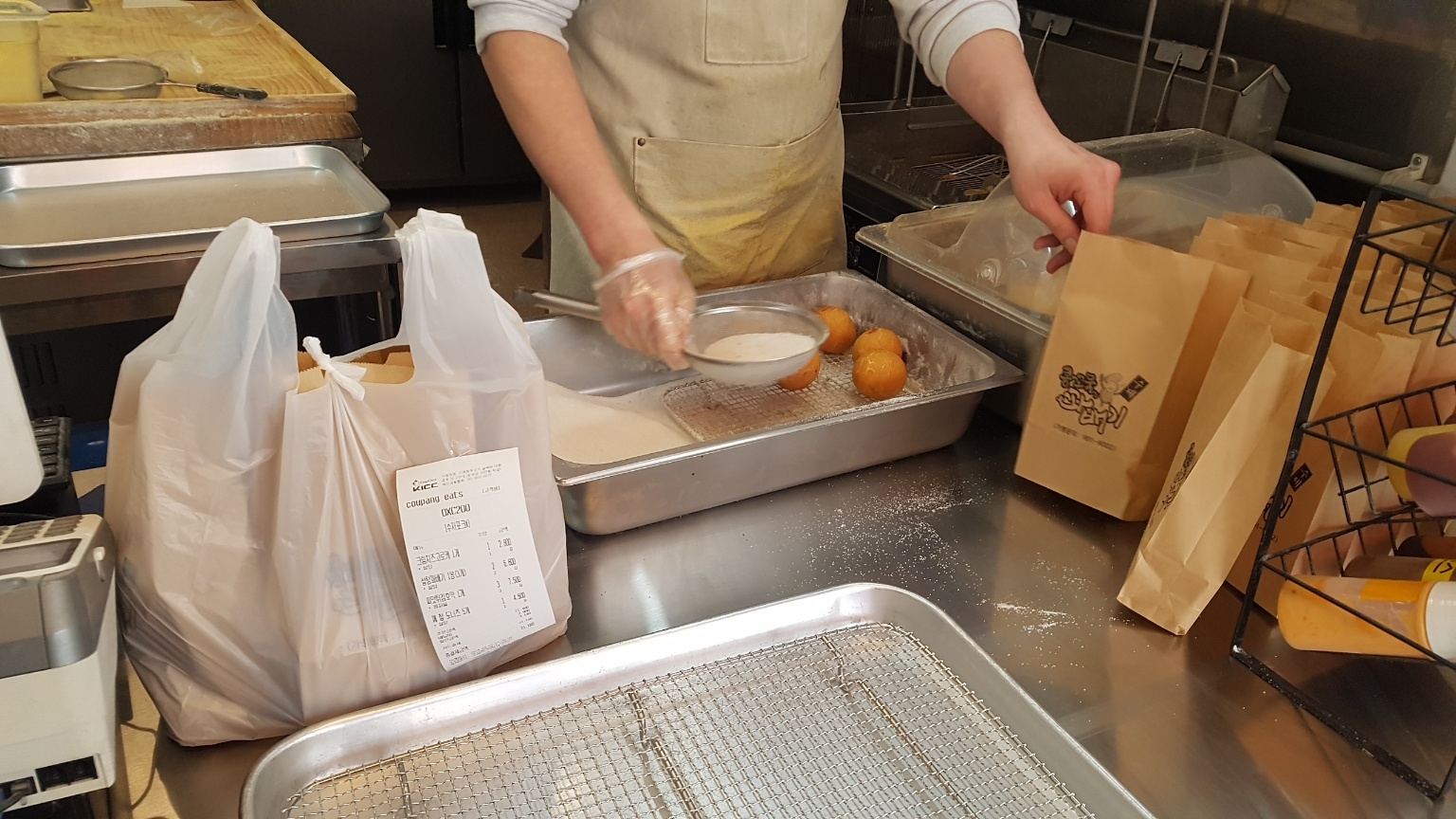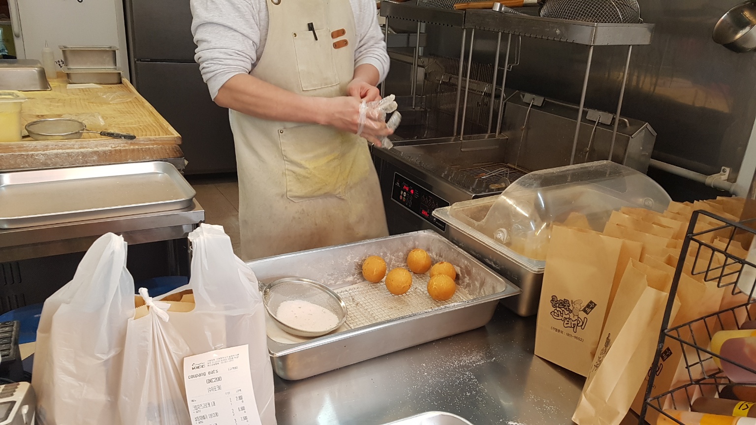 그럼에도 사장님이 꽈배기, 도너츠, 핫도그 등 맛있는 간식들을 만드는 과정을 눈앞에서 지켜보는 재미가 있었다.