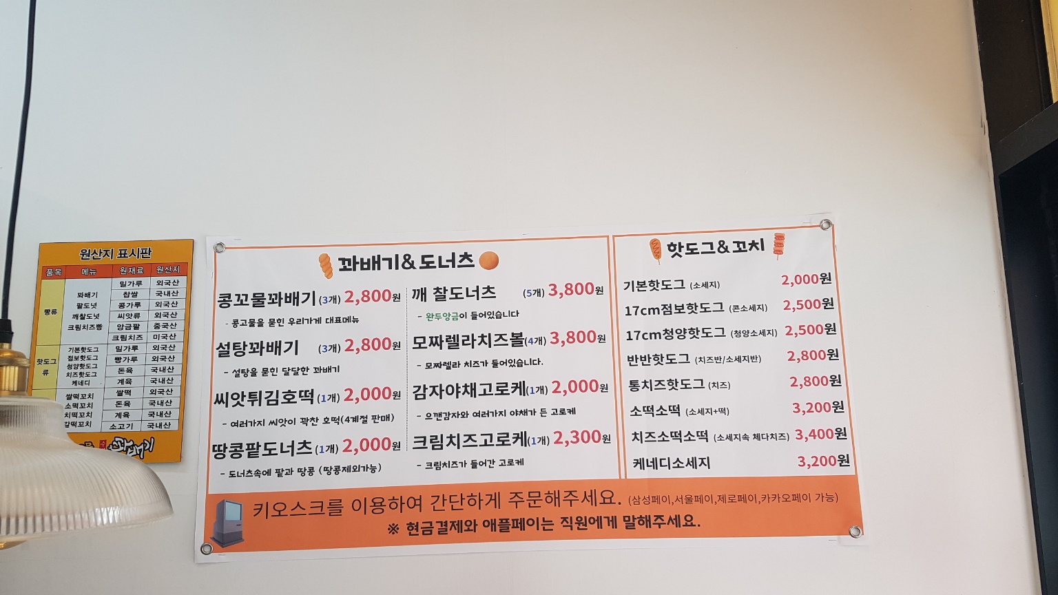 콩꼬물꽈배기 도너츠 메뉴 가격