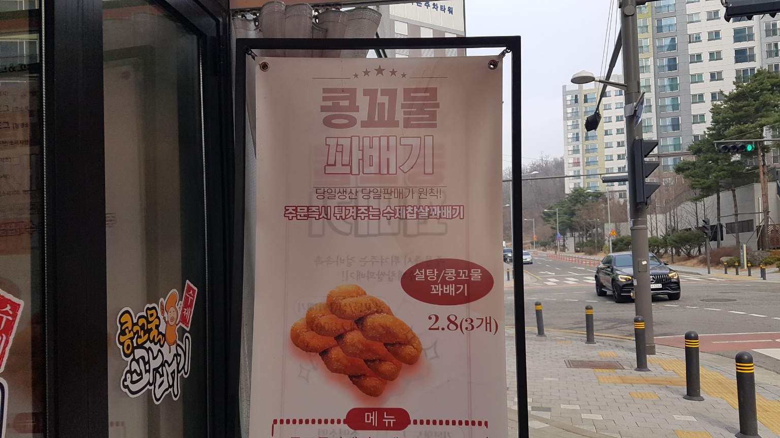 우리 가족이 즐겨찾는 콩꼬물 수제꽈배기집은 푸른수목원 근처의 상가건물 1층에 자리 잡고 있다. 그래서 항동 푸른수목원 산책이나 나들이를 갈 때면 꼭 들리는 푸른수목원맛집이다.