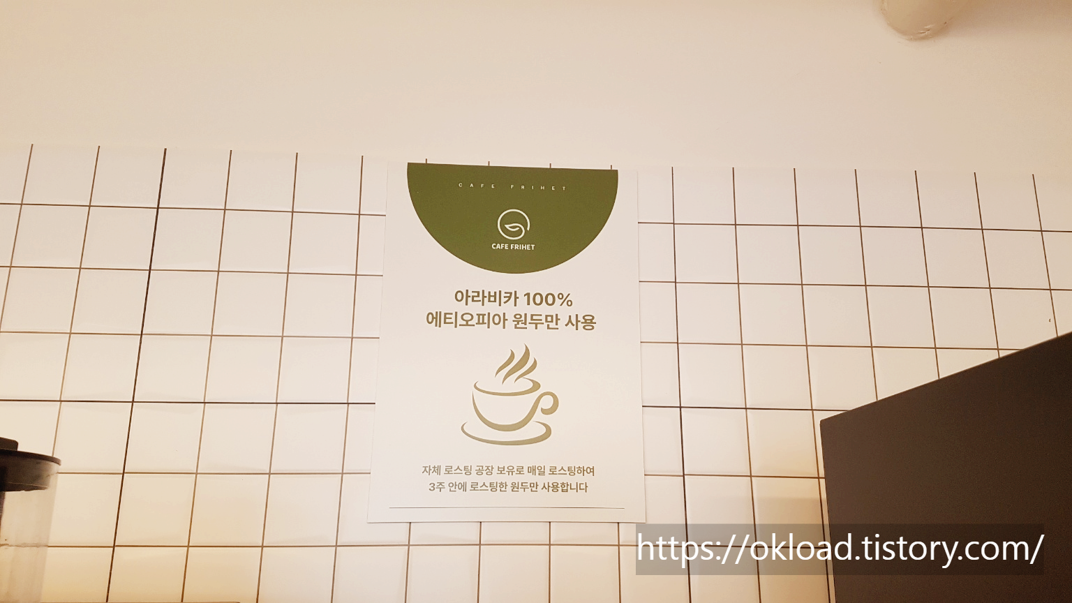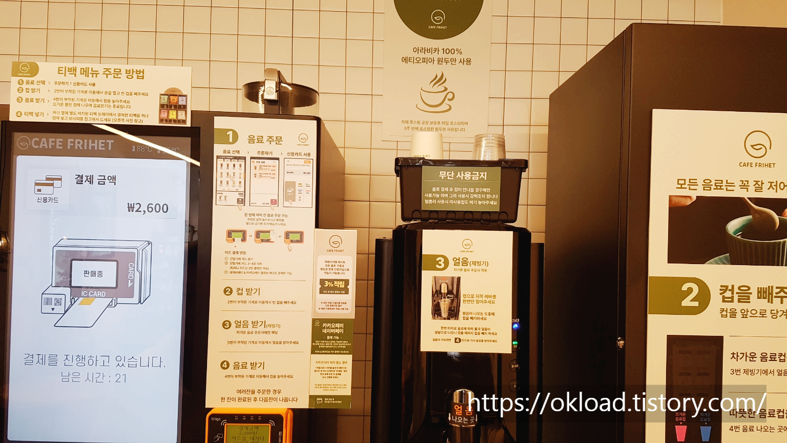 아라비카 100% 에티오피아 커피원두만을 사용하는 프리헷 무인카페다.