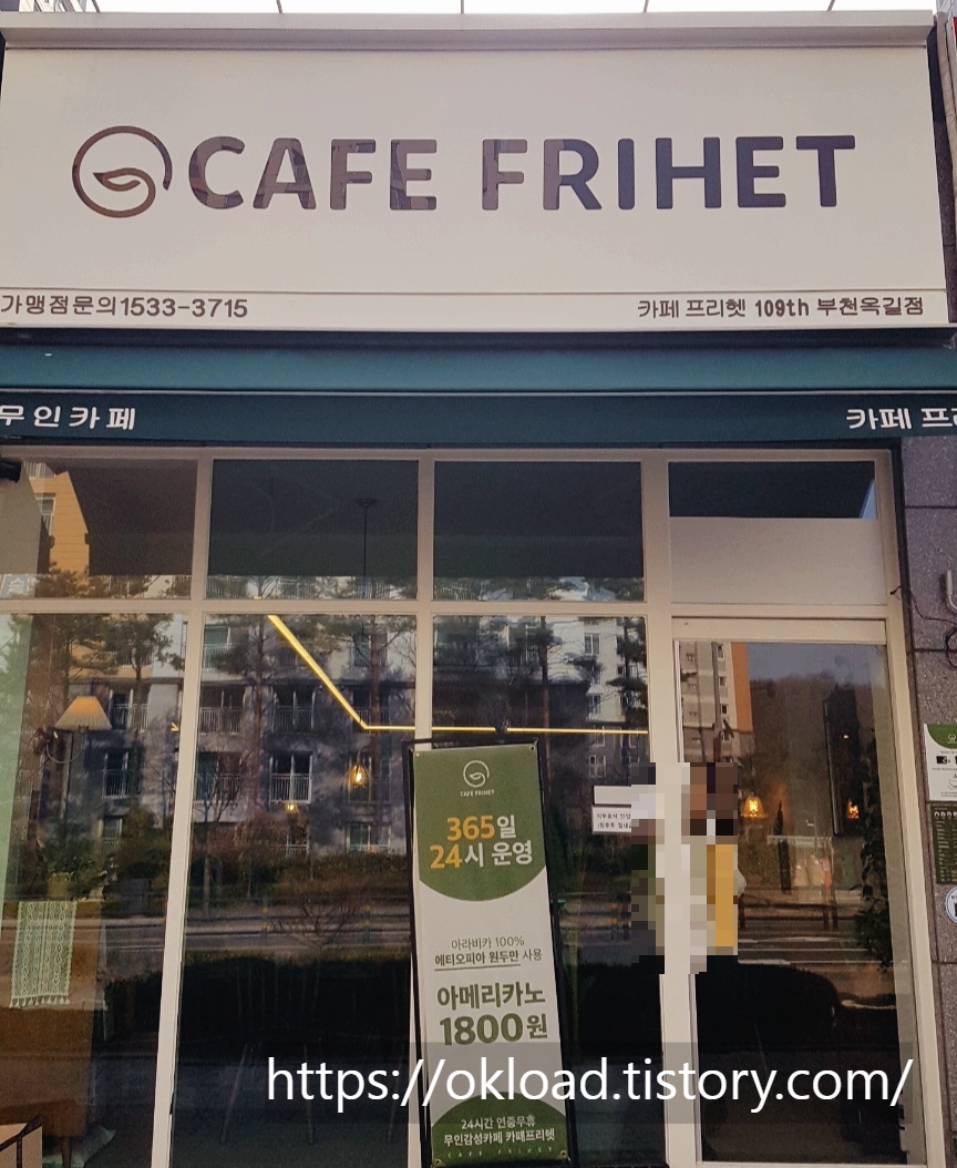 부천시 옥길동에 오픈한 프리헷 카페는 옥길브리즈힐 아파트 상가 1층에 입점해 있다.