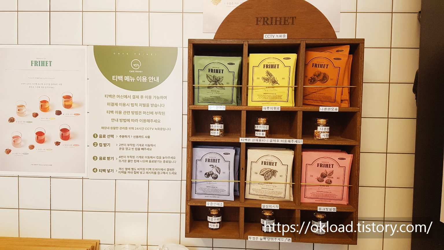 카페프리헷은 아기자기 예쁜 인테리어만큼이나 가장 많이 주문하는 아메리카노와 라떼의 커피샷 정도를 구분하여 판매하고 있다.