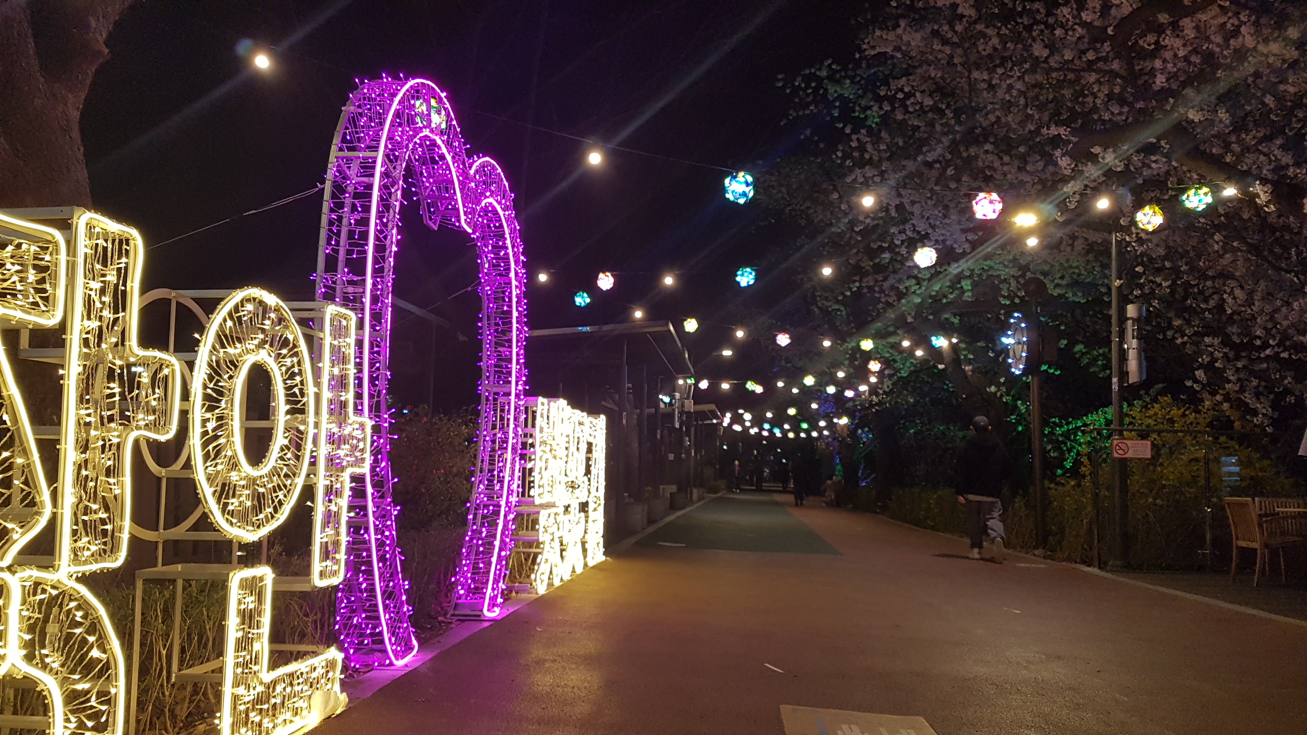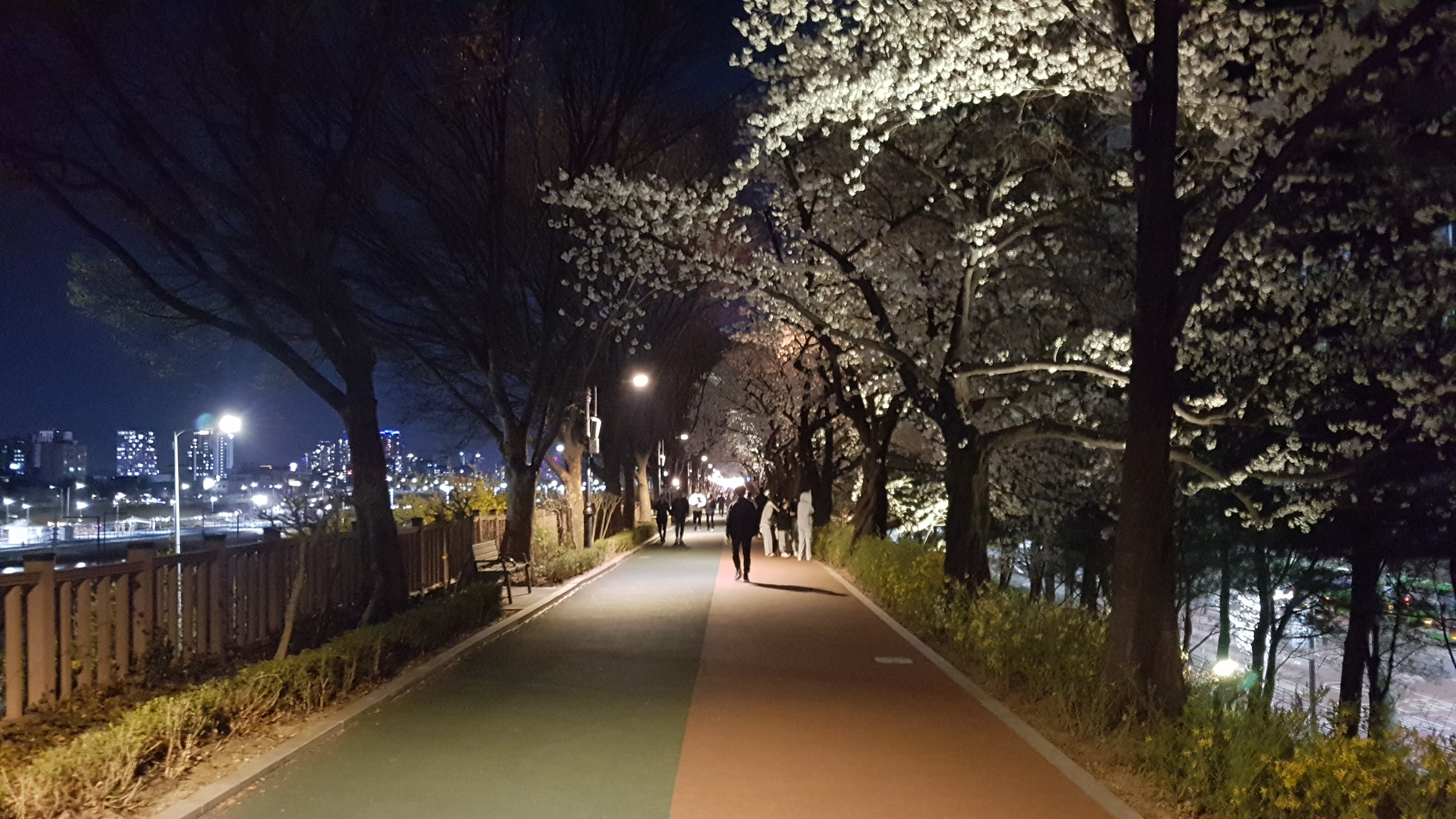 중랑천 둑길을 따라 길게 이어진 벚나무들이 피어낸 벚꽃들과 은은한 조명들이 어우러지면서 화려기까지 한 장안벚꽃길이었다.