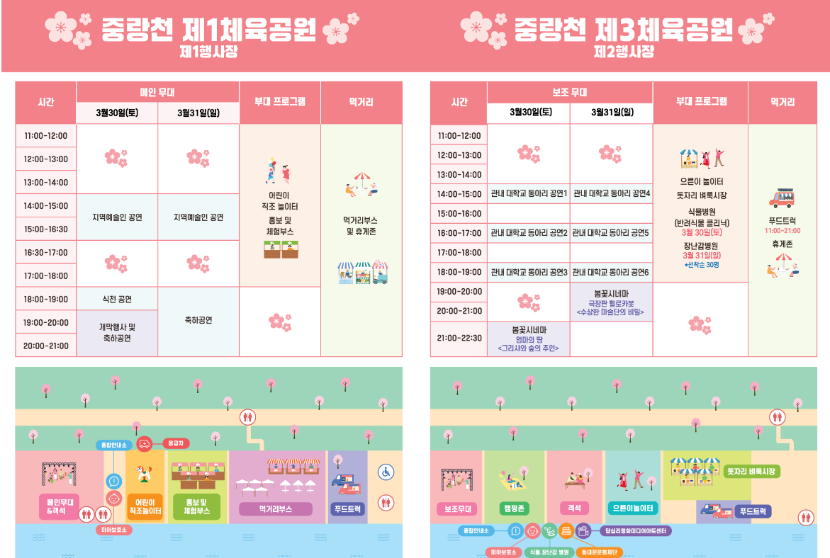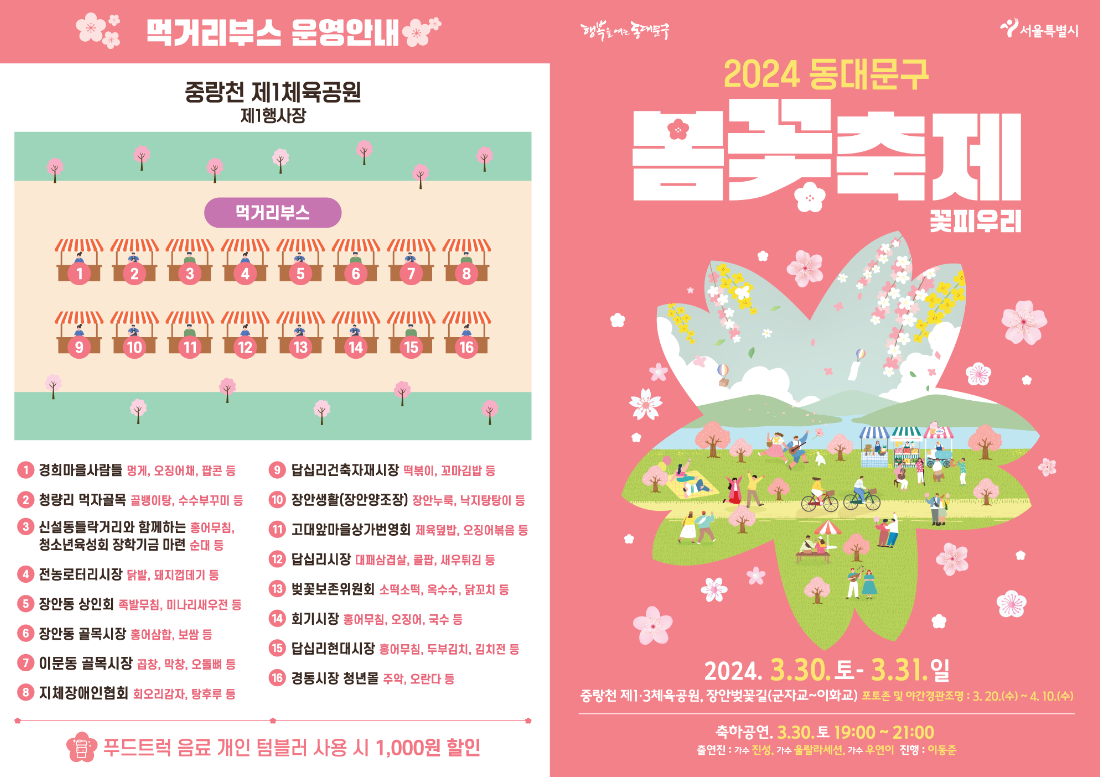장소는 동대문구 중랑천 제1, 제3 체육공원과 장안벚꽃길 일대다.