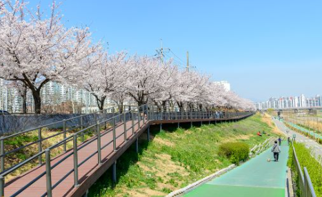따라서 많은 지자체를 걸쳐있는데, 그중 서울 양천구와 구로구 사이를 흐르는 안양천 주변의 번꽃길은 서울을 대표하는 벚꽃명소이다.