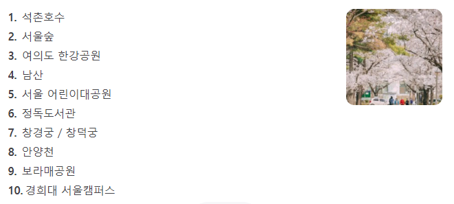 서울 대표 벚꽃 명소