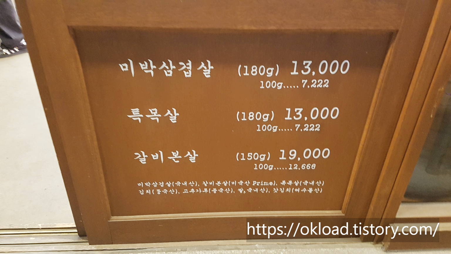 목구멍 삼겹살 갈비살 메뉴판 가격