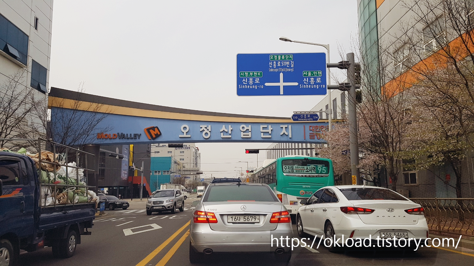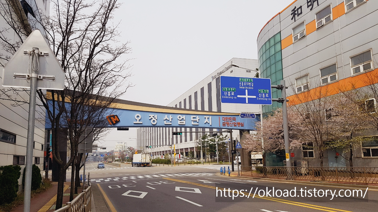 경기 부천 오정산업단지 입구의 모습이다. 평일에는 제품과 물자를 실어 나르는 대형화물차와 윙바디 등 작업차량들이 분주하게 오고 가는 오정일반산업단지 정문 사거리의 모습이다.