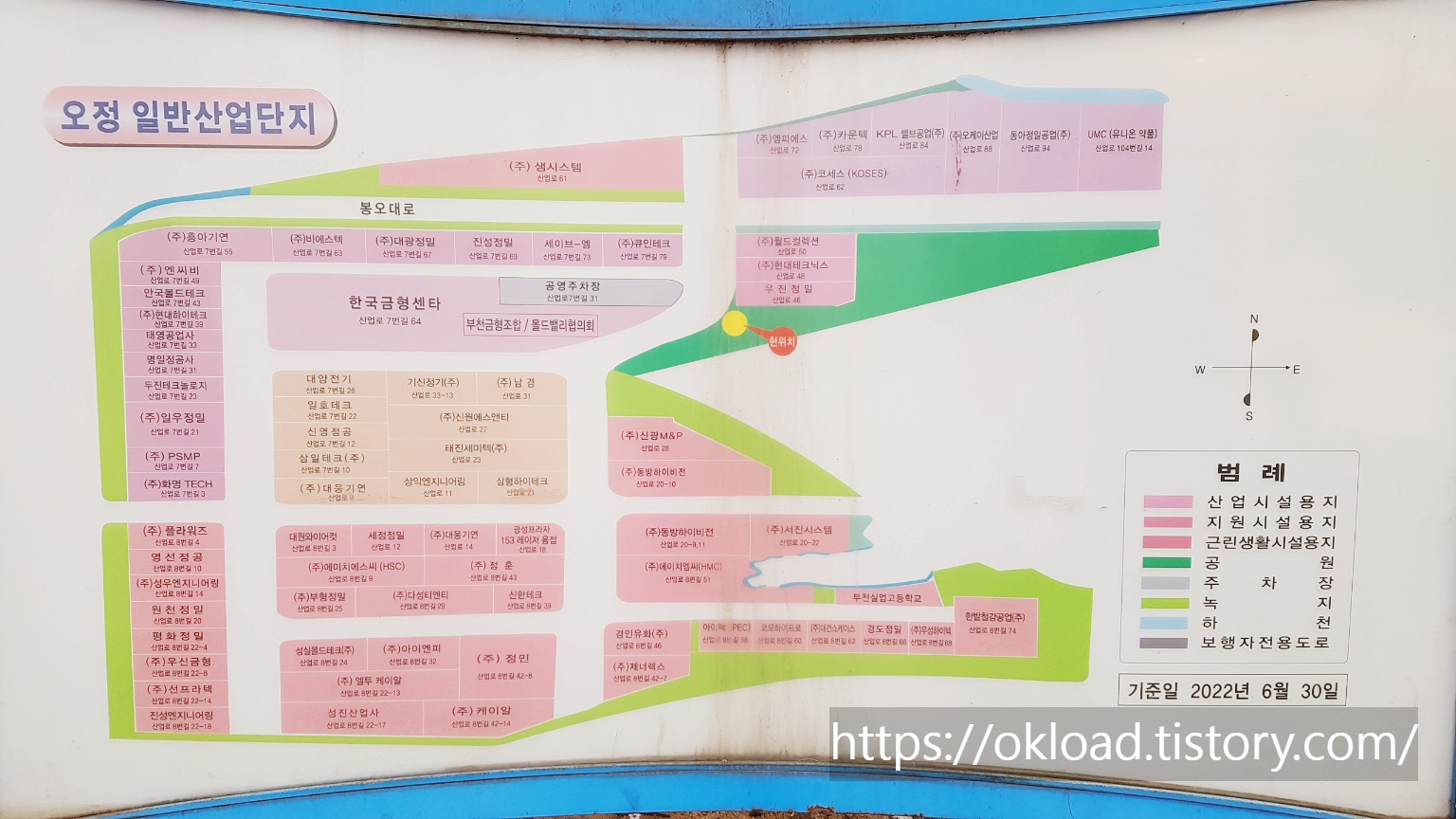 오정 일반산업단지 입주 업체 및 공장들의 배치도다. 평면도 제작 기준일이 2022년이니, 그 사이에 변화는 있을 터이니 100% 현 상황이 반영되지는 않았을 것이다.