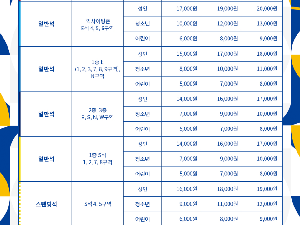특석(어린이) 15,000원 ~ 17,000원