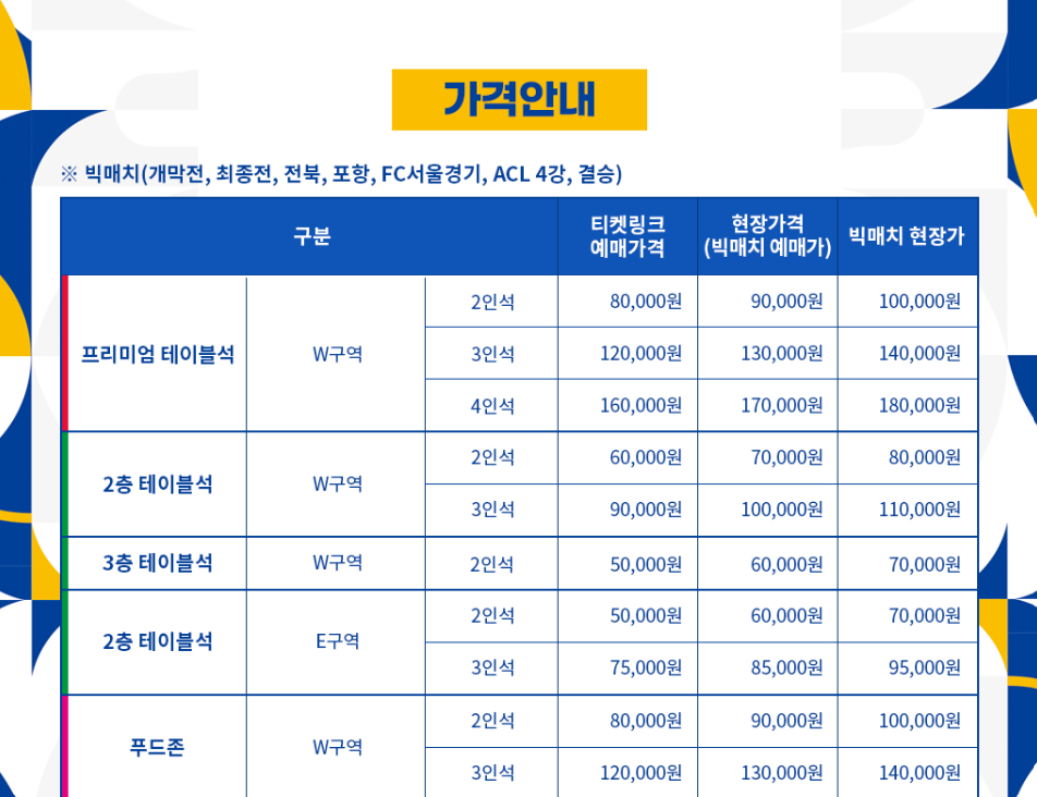 울산HD 티켓 입장료 좌석별 가격