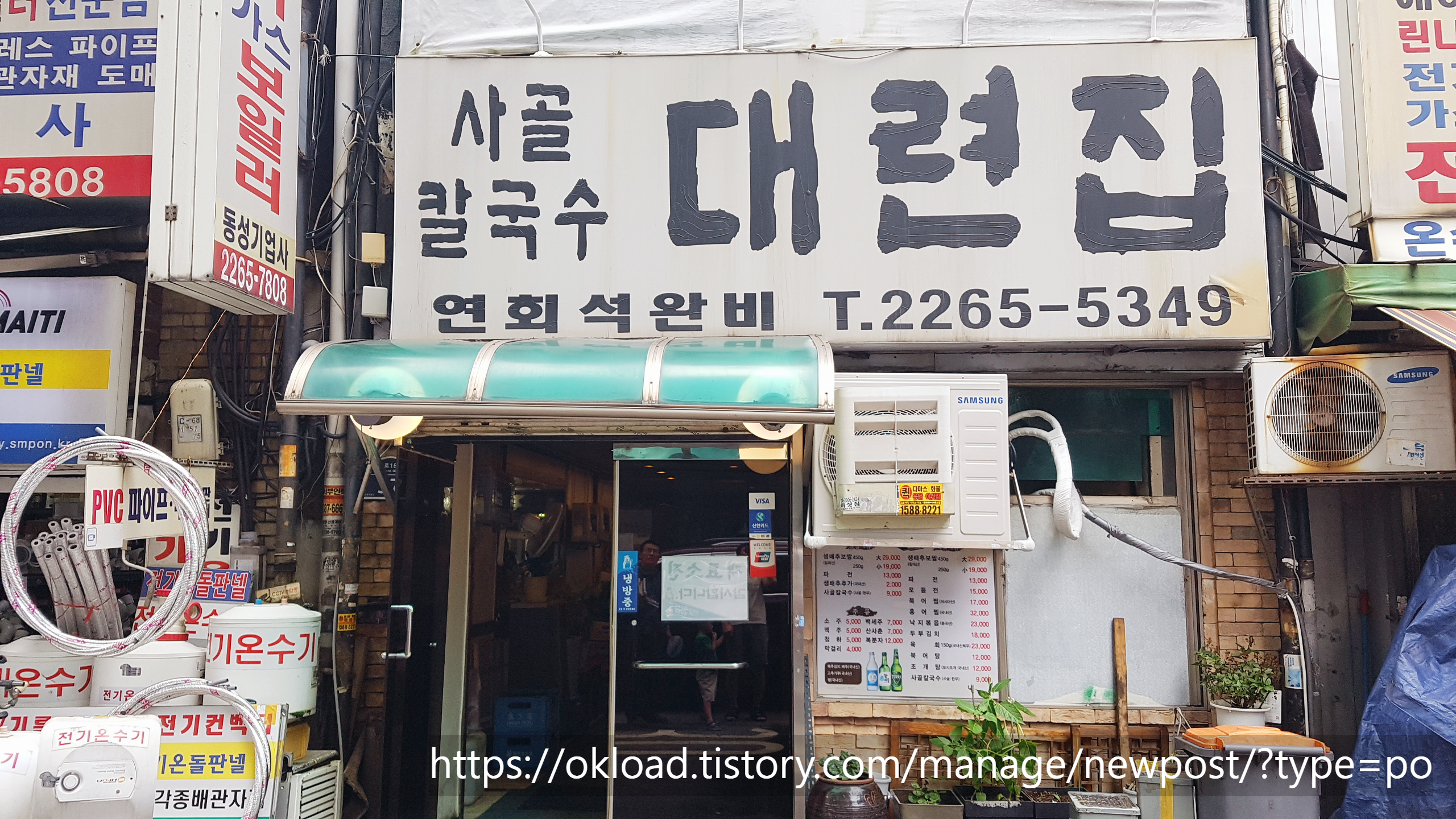 사골칼국수 맛집 대련집의 외관과 간판은 허름하고, 얼핏 보면 식당이지 제조업체인지 분간이 잘 안 간다.