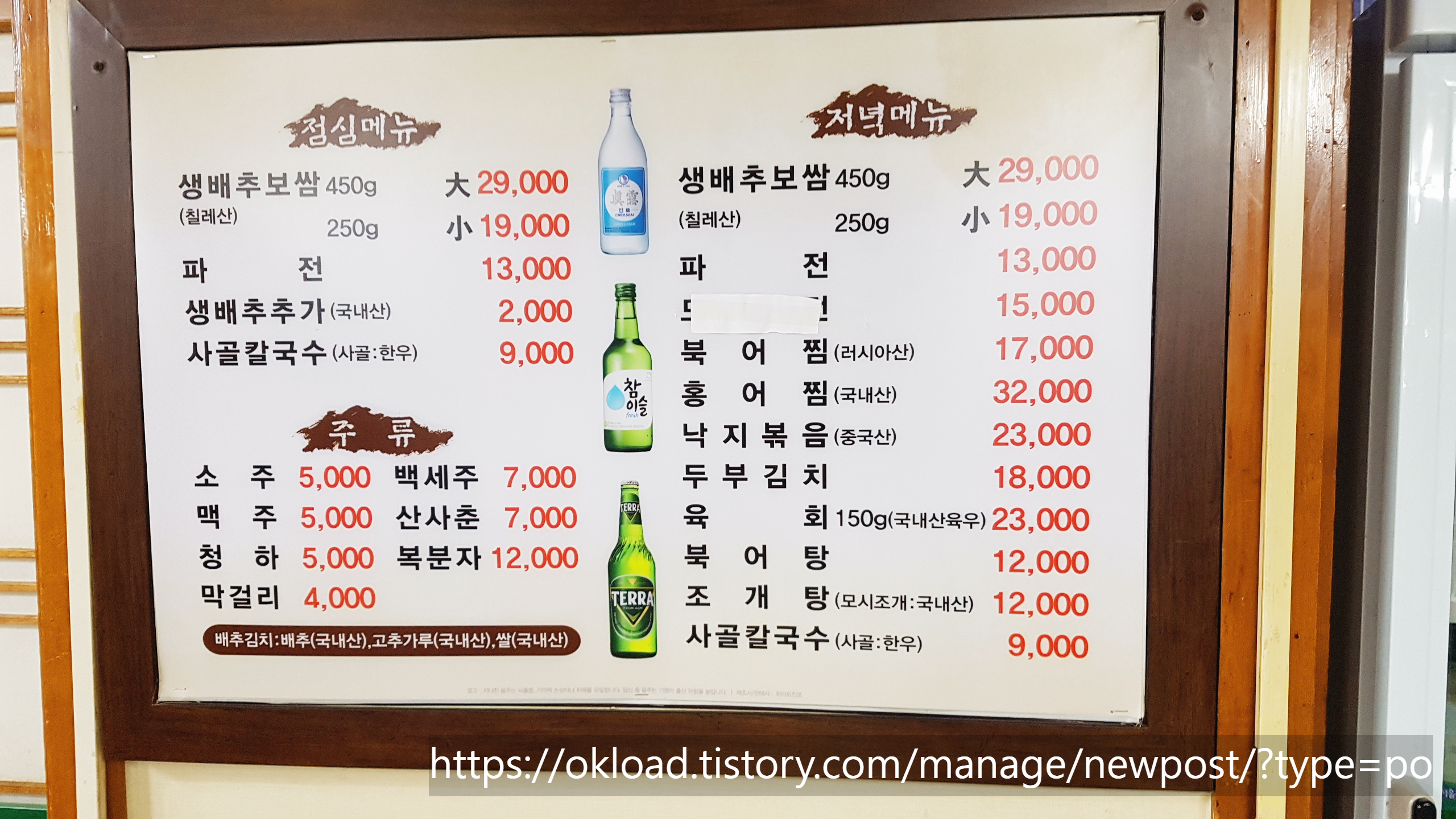 대련집 메뉴 가격 정보