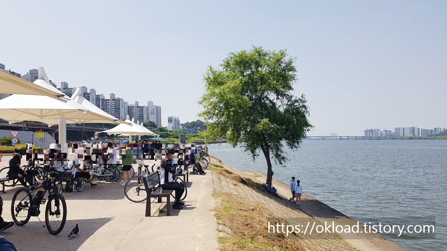 가까운 근처에 음료나 먹을거리를 구입할 수 있는 편의점이나 가게가 없지만, 각자 싸 온 간식을 일행들과 함께 한강을 바라보며 먹는 모습이 마냥 행복해 보였다.