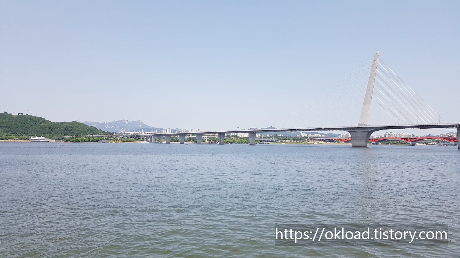 자주 지나가면서 보는 한강이지만, 자전거로 1시간 이상 패달을 밟아서 도착한 한강은 더 아름답고 웅장하게 느껴졌다.