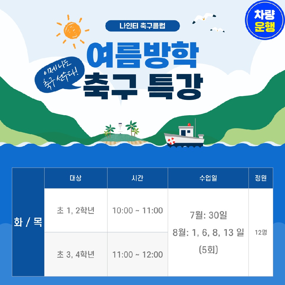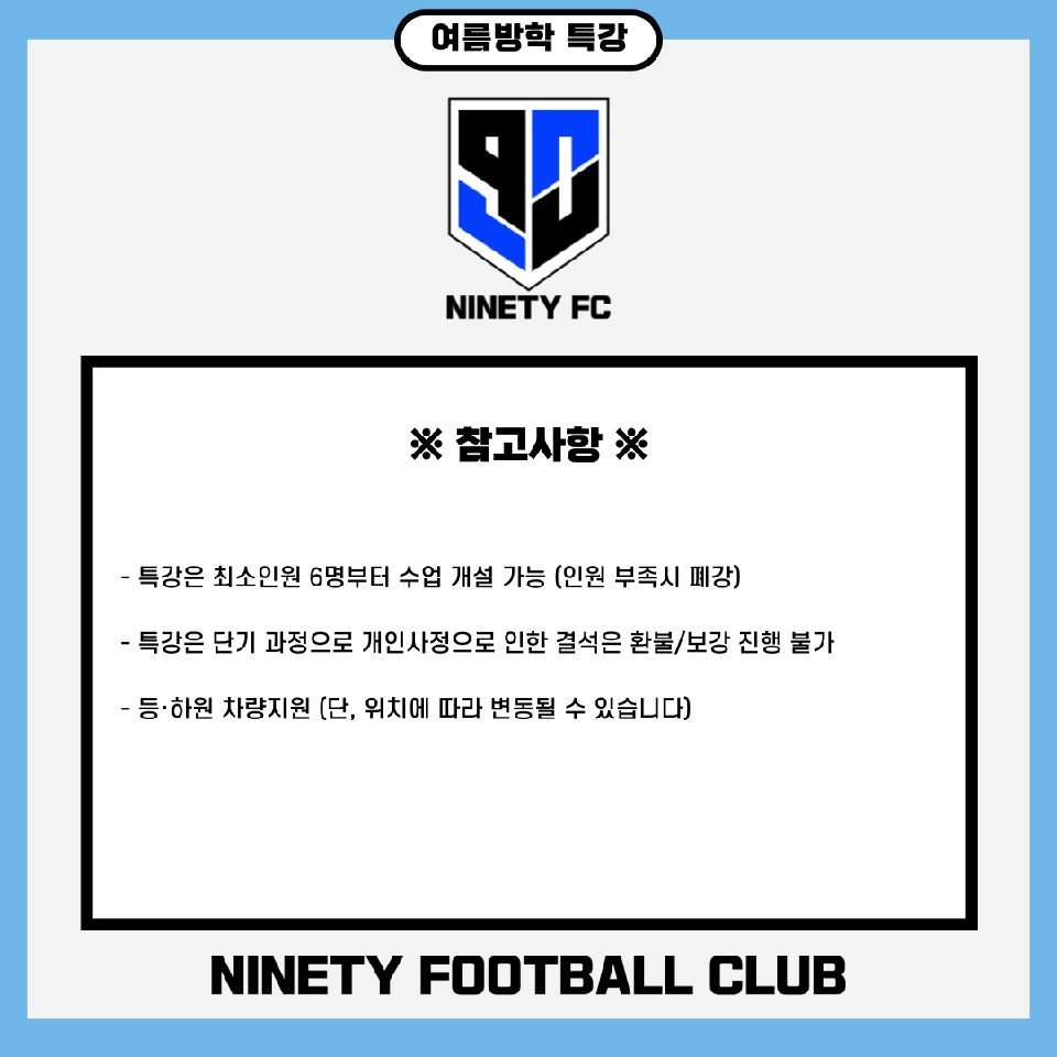 부천시 축구교실 초등축구학원 '나인티 축구클럽'이 2024 여름방학특강을 신청받고 있다.