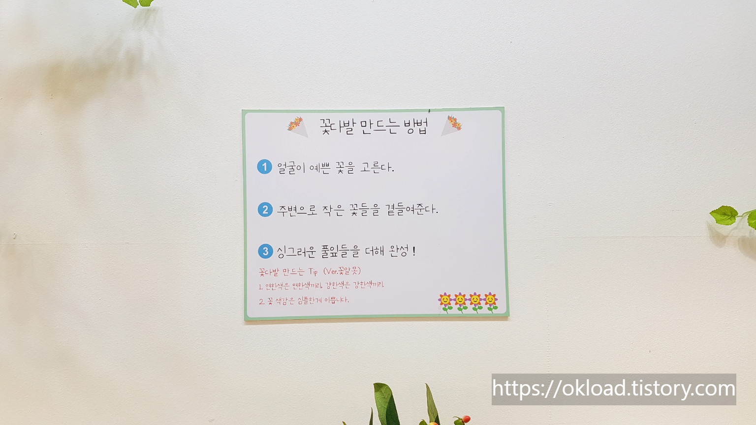 셀프로도 직접 꽃다발을 만들 수도 있도록 '꽃다발 만드는 방법' 안내글이 적혀있다.