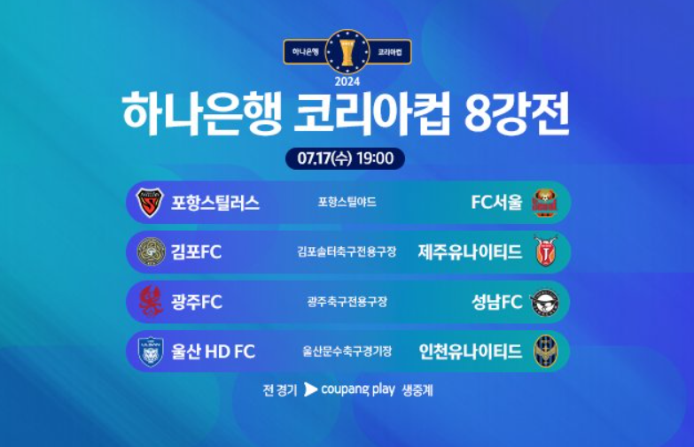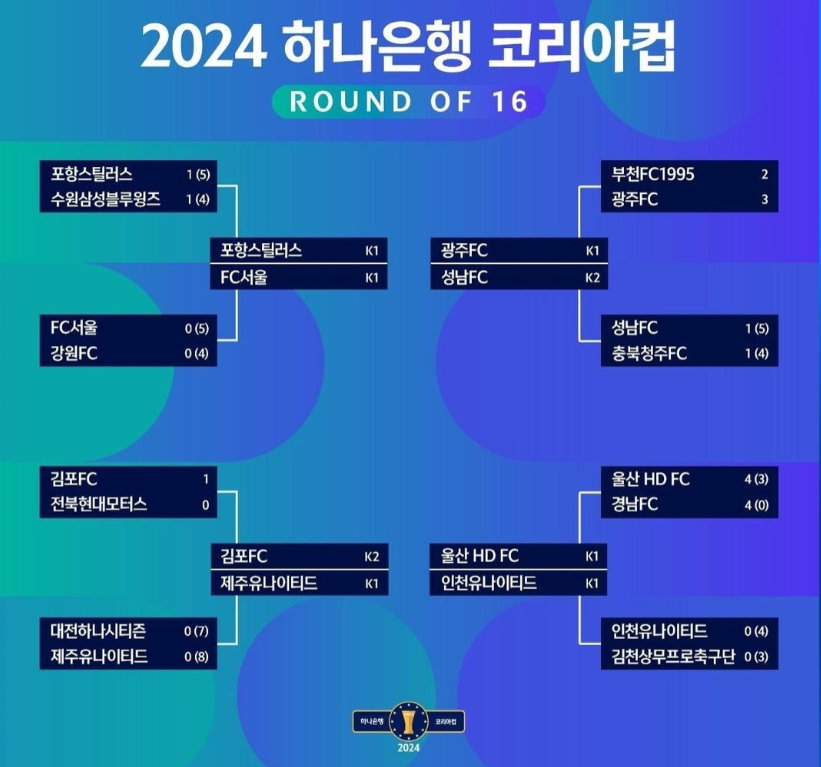 2024년 하나은행 코리아컵 8강전 진출팀이 가려졌다.