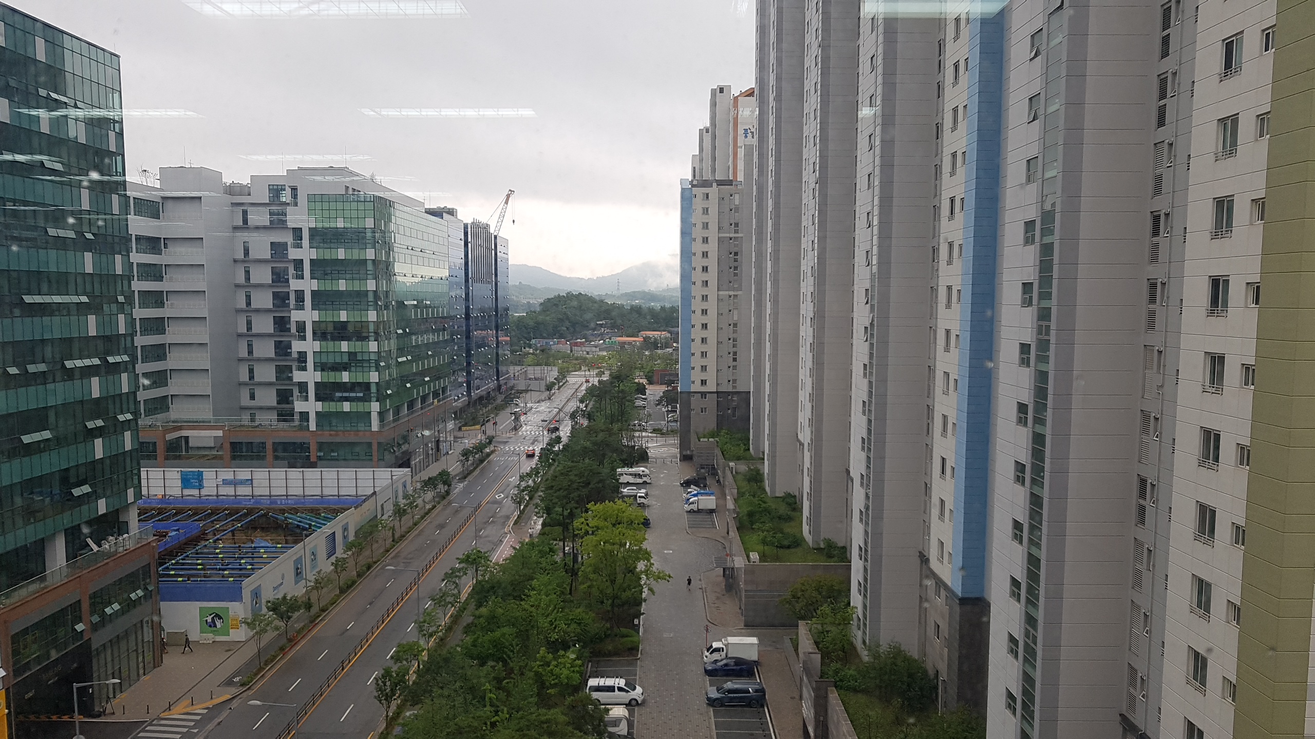 보호자 대기석 창가에서 바라본 전경이다. 좌측으로 우성테크노파크 등 지식산업센터, 우측으로 옥길 제이드카운티1단지가 한눈에 들어온다. 저 멀리 뒤편으로 보이는 산이 광명 도덕산 또는 구름산이다. 창밖의 풍경을 바라보는 즐거움이 있다. 한강뷰까지는 아니어도, 이 정도면 옥길에서 제법 괜찮은 뷰다. 나중에 광명시흥 3기 신도시로 이어지는 도로가 될 수도 있다. 문득 시흥광명 3기신도시는 계획대로 잘 진행되고 있는지 궁금하다.