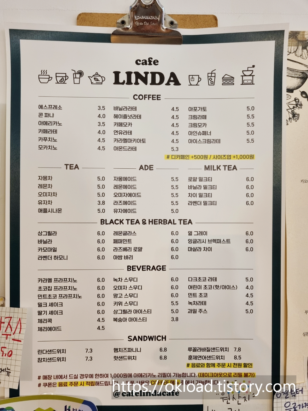 샌드위치맛집 카페 린다 메뉴