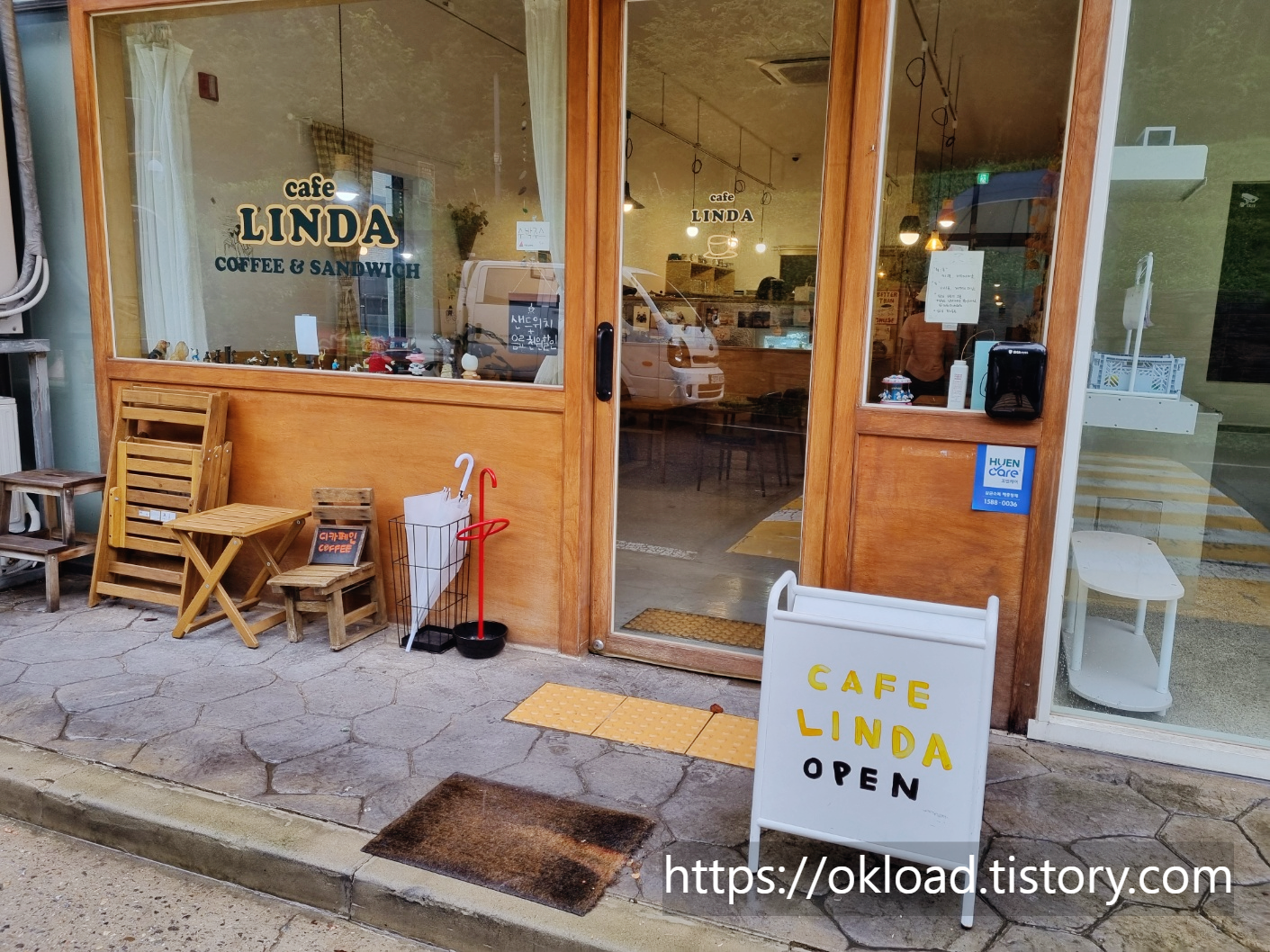 슈퍼브카페가 투박한 아메리카 미국식이면, 린다 카페는 부드럽고 따스한 유럽풍 감성의 외부 모습이다.