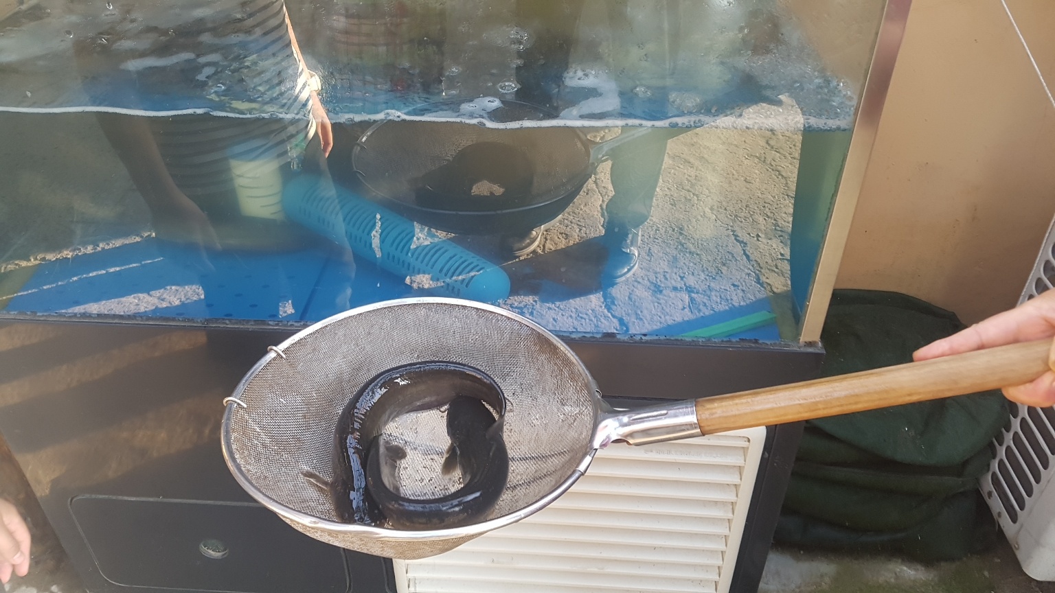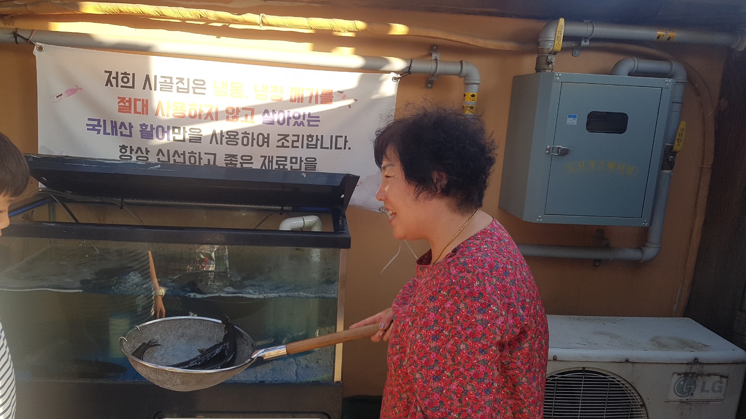 입구 수족관에서 사장님께서 직접 싱싱하고 활기 넘치는 민물고기와 미꾸라지를 직접 뜰채로 떠서 아이에게 보여주셨다.