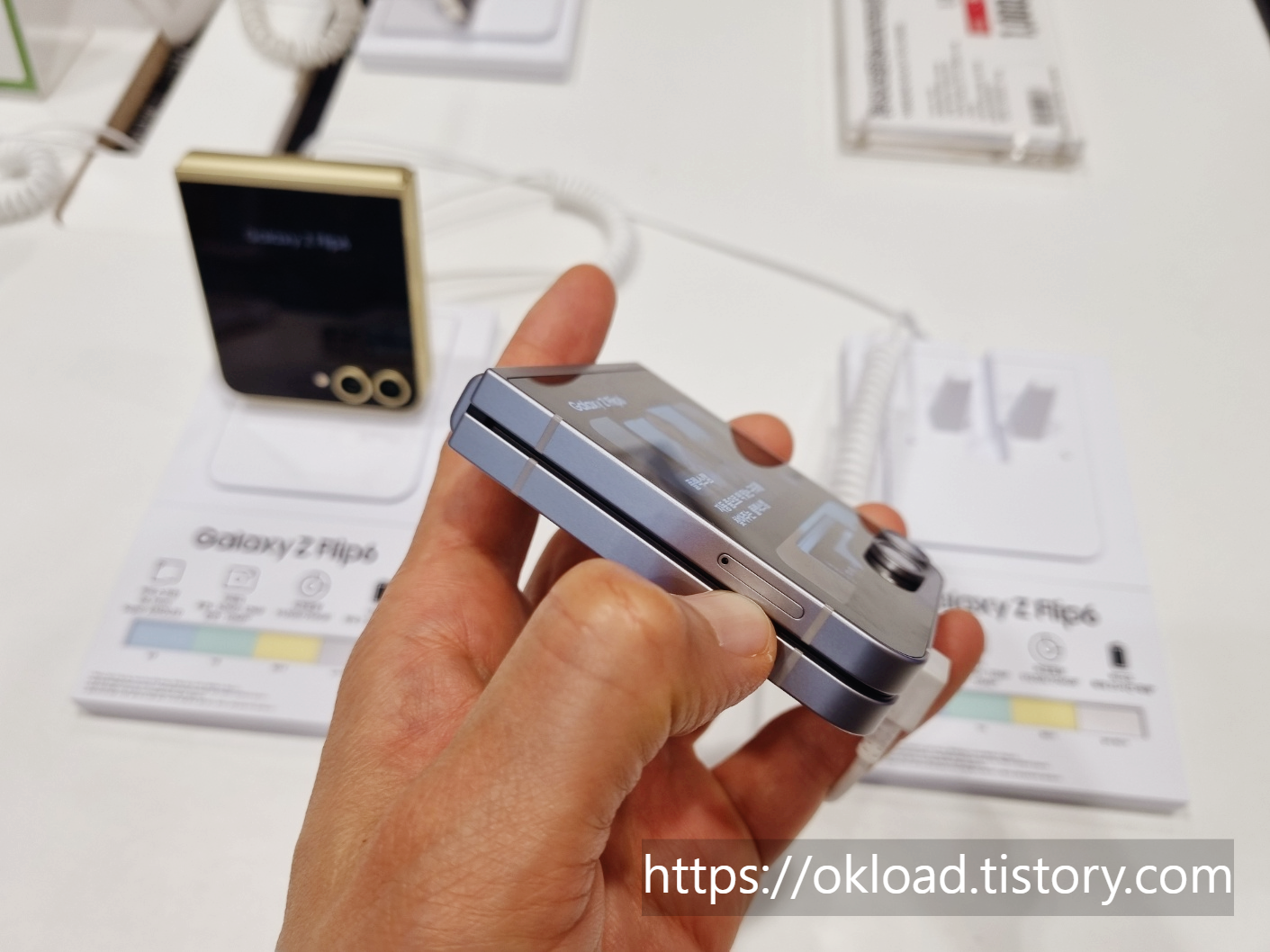 플립5에 비해 월등히 가볍고 그립감도 향상된 갤럭시 플립6다.