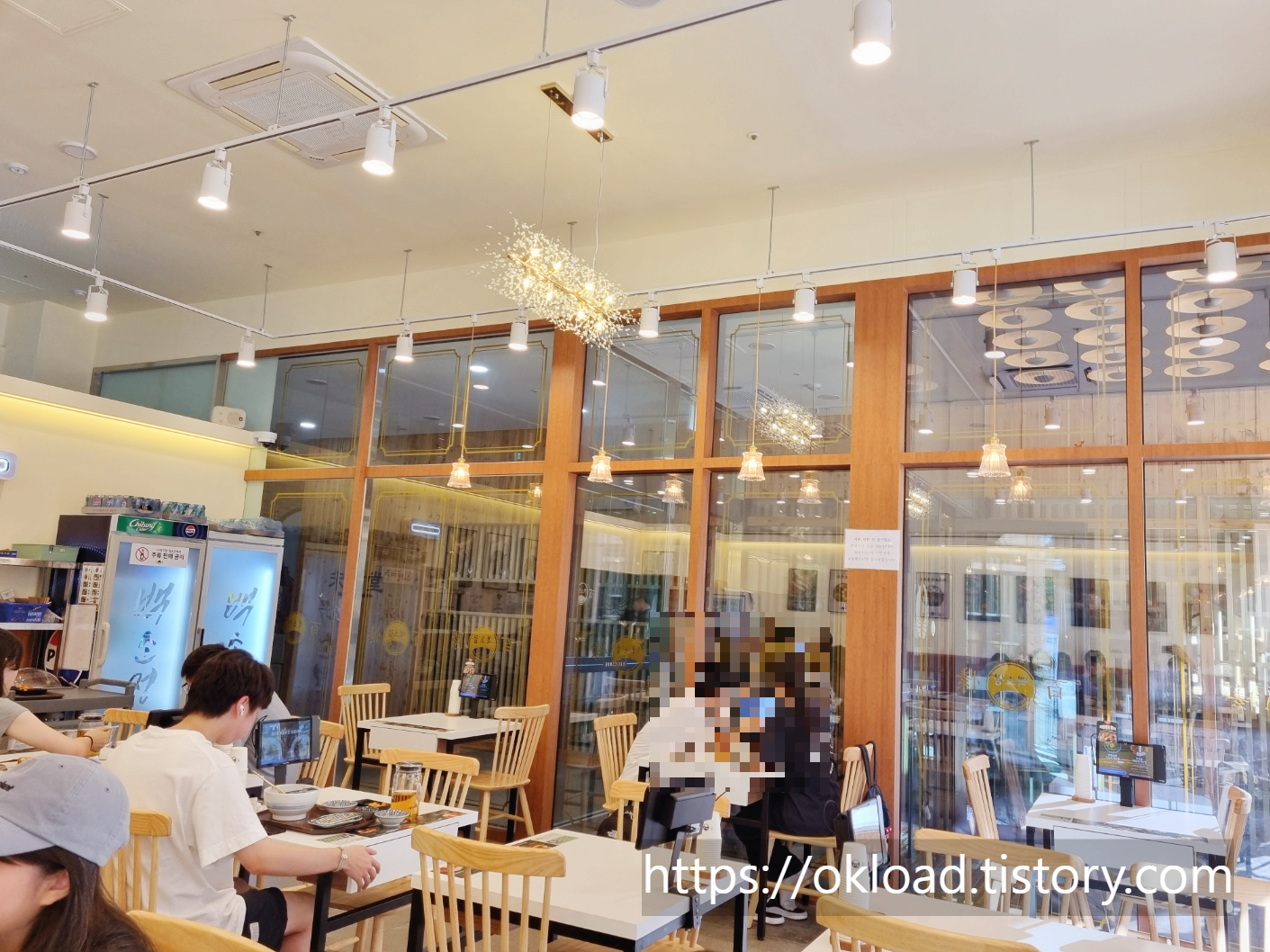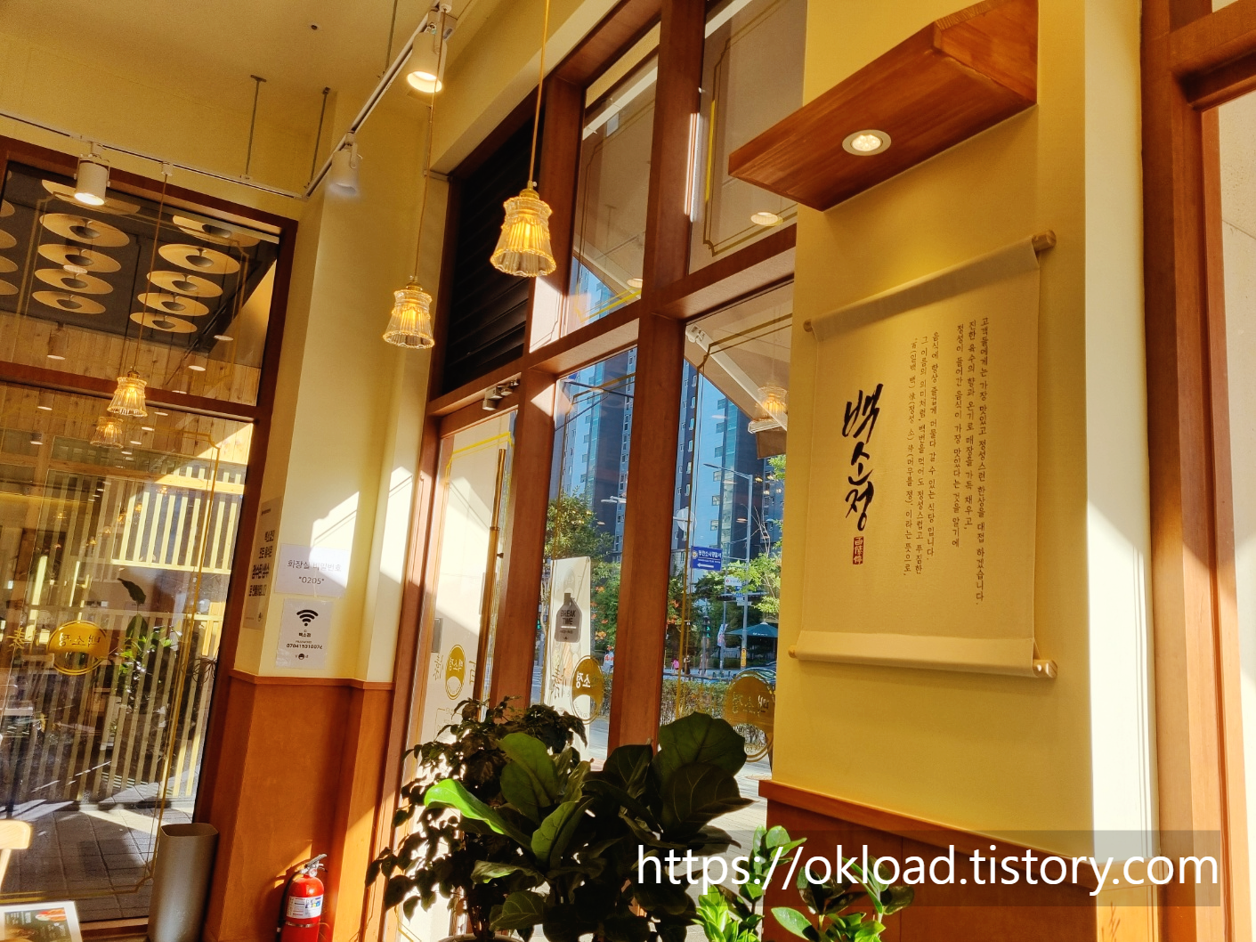 화이트와 우드를 주로 사용한 백소정 식당 내부 콘셉트이다.