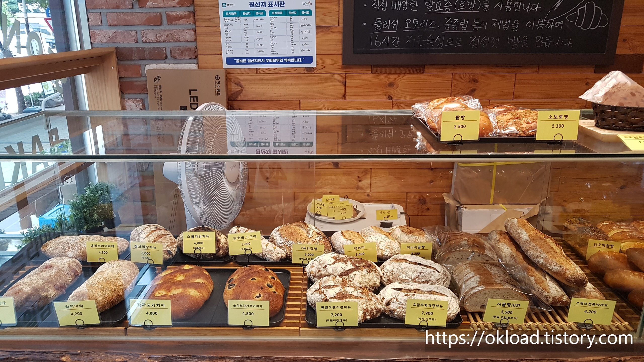 스톤오븐 빵집에 들어가면 사장님의 빵에 대한 철학이 담기 판서가 벽면에 적혀있다.