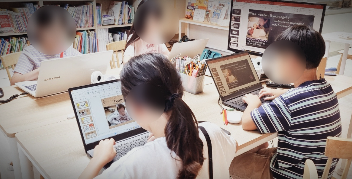 이처럼 초등학생이 개인 노트북으로 PPT 에세이 라이팅을 하는 것은 국제중(특목중) 및 특목고(영재고, 과학고, 외고 등)를 대비하는 과정이라고 볼 수 있습니다.
