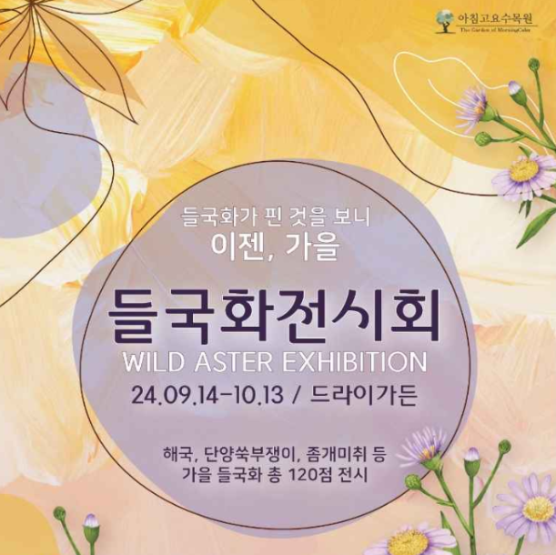 2024년 아침고요 제20회 들국화 전시회는 '들국화가 핀 것을 보니 이젠 가을'이라는 주제로 드라이가든에서 개최된다.