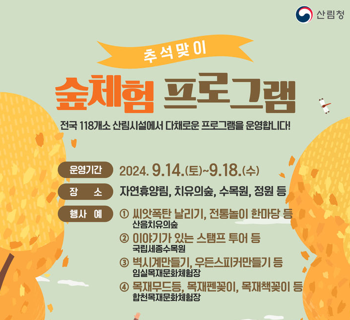 자세한 추석 숲체험프로그램은 '산림청 홈페이지'에서 확인할 수 있다.
