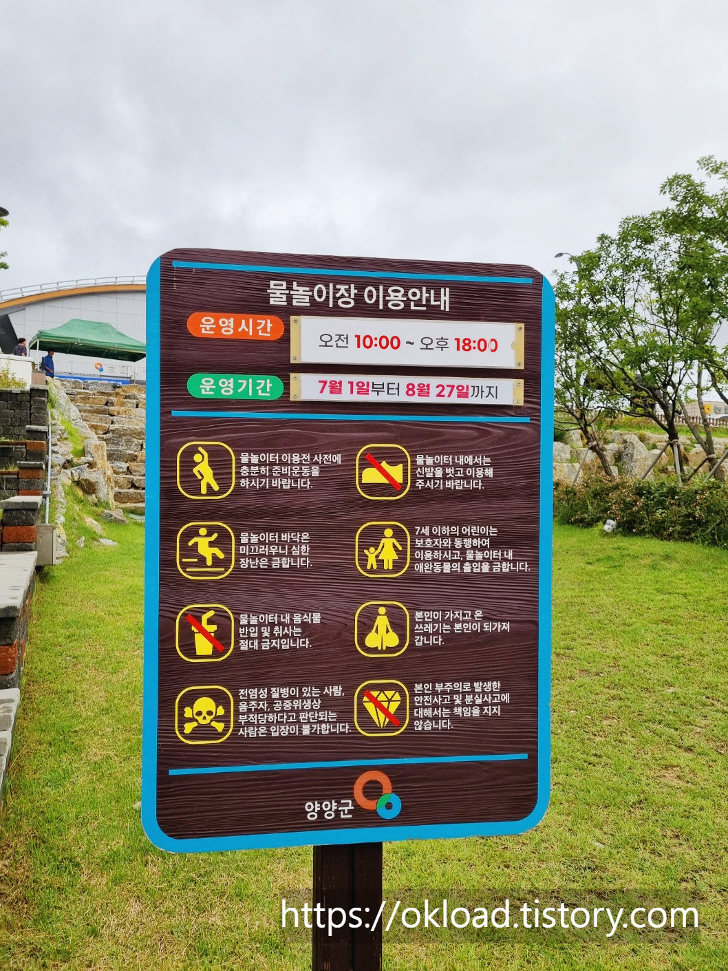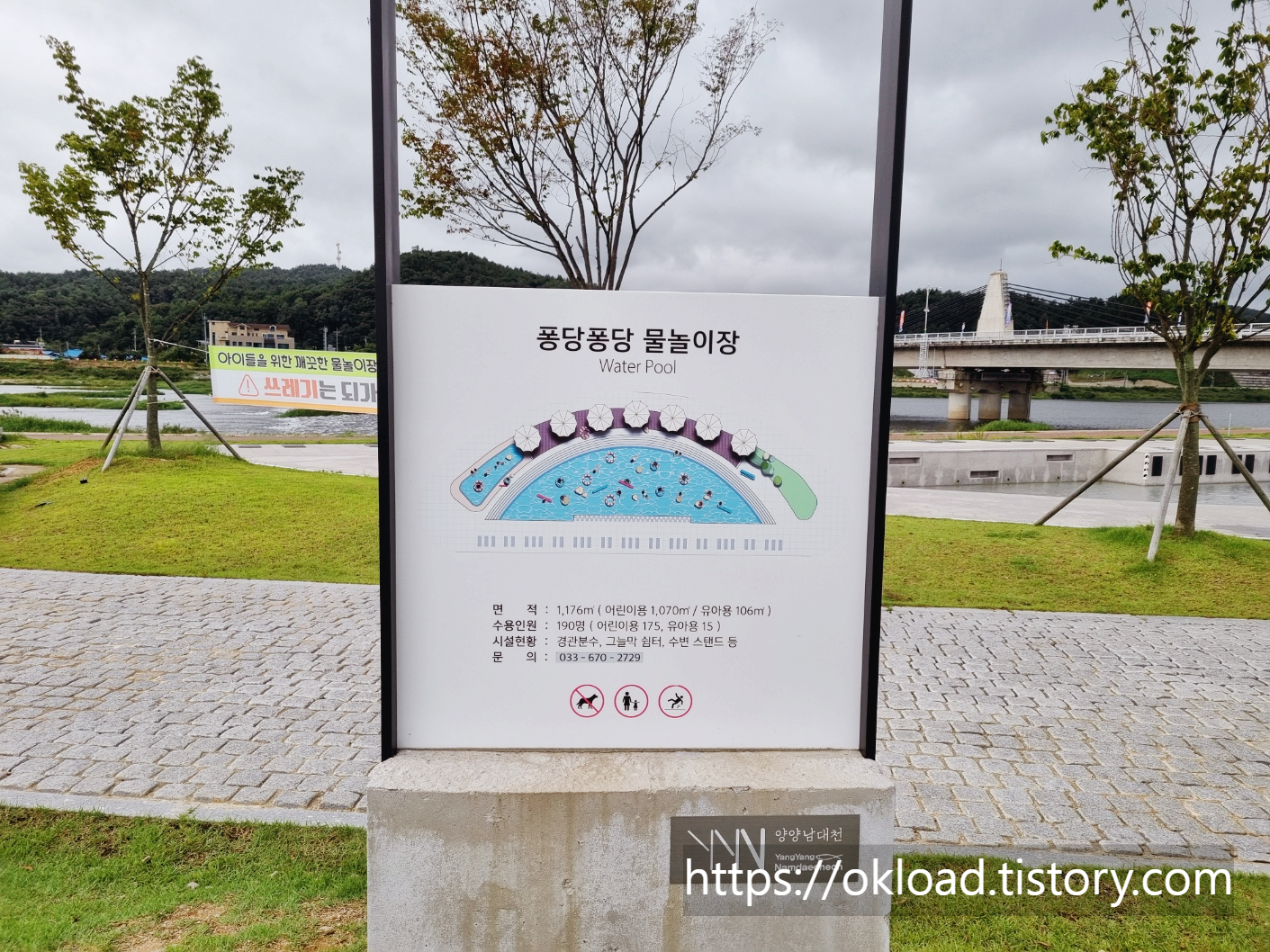 올해는 이용하지 못하였지만, 내년 여름에는 꼭 아이를 데리고 방문하고 싶은 양양남대천체육공원 '퐁당퐁당 물놀이장'이다.