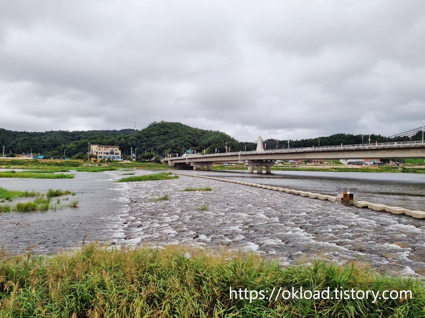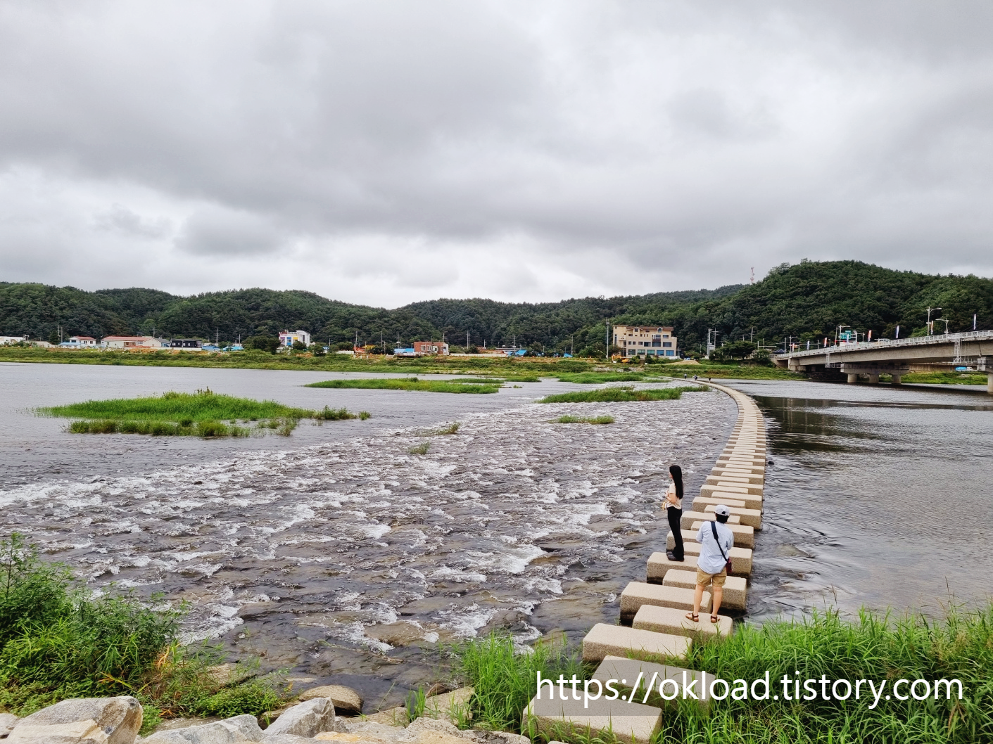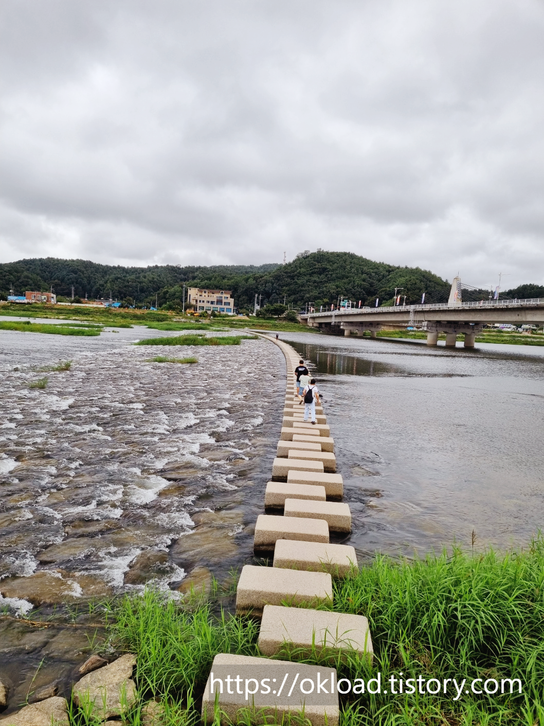제일 먼저 남대천과 긴 돌다리(징검다리)를 감상하시죠. 족히 100미터는 되어 보이는 긴 징검다리 입니다.