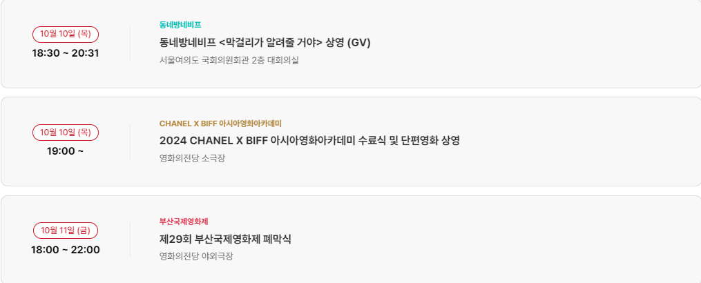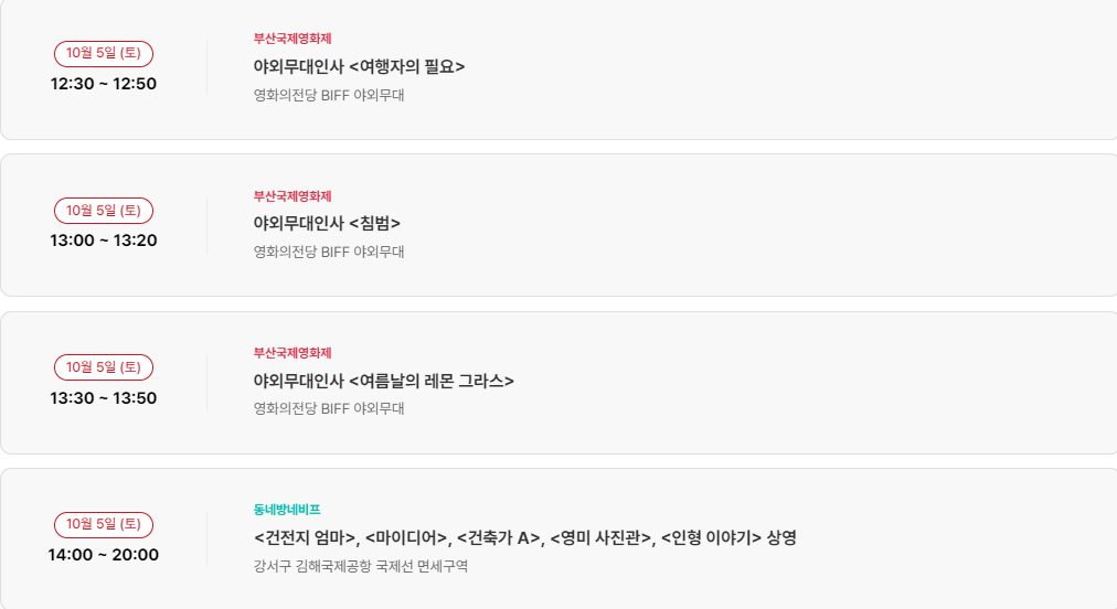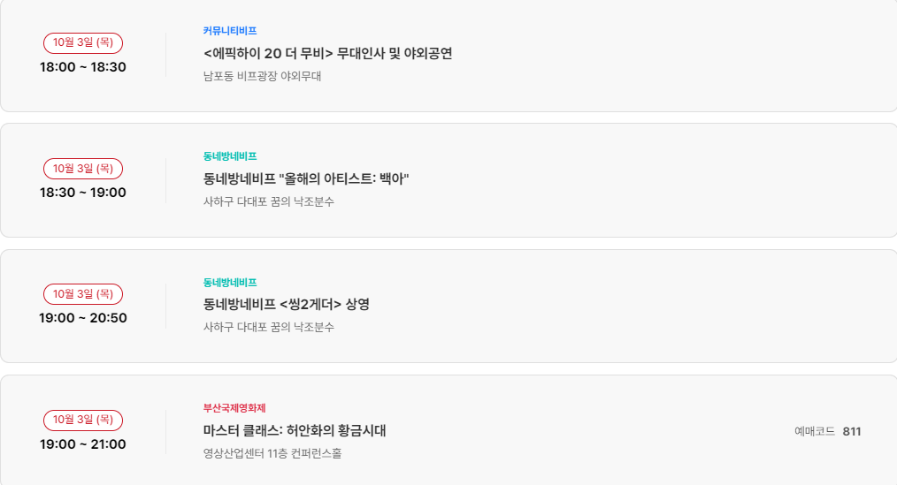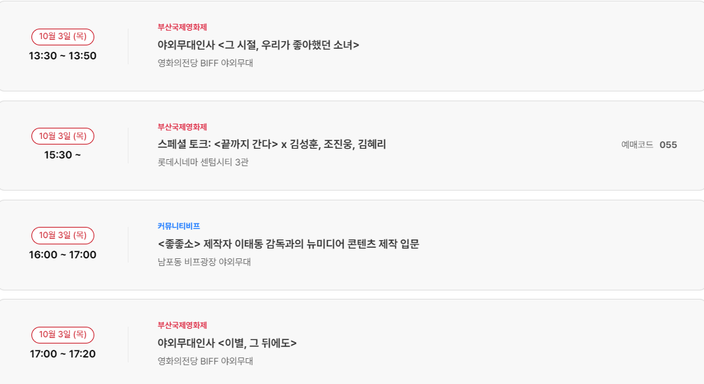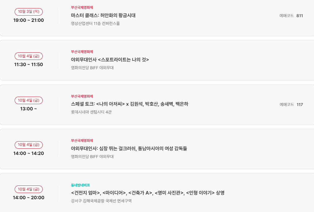10월 4일(금) 부산국제영화제 일정