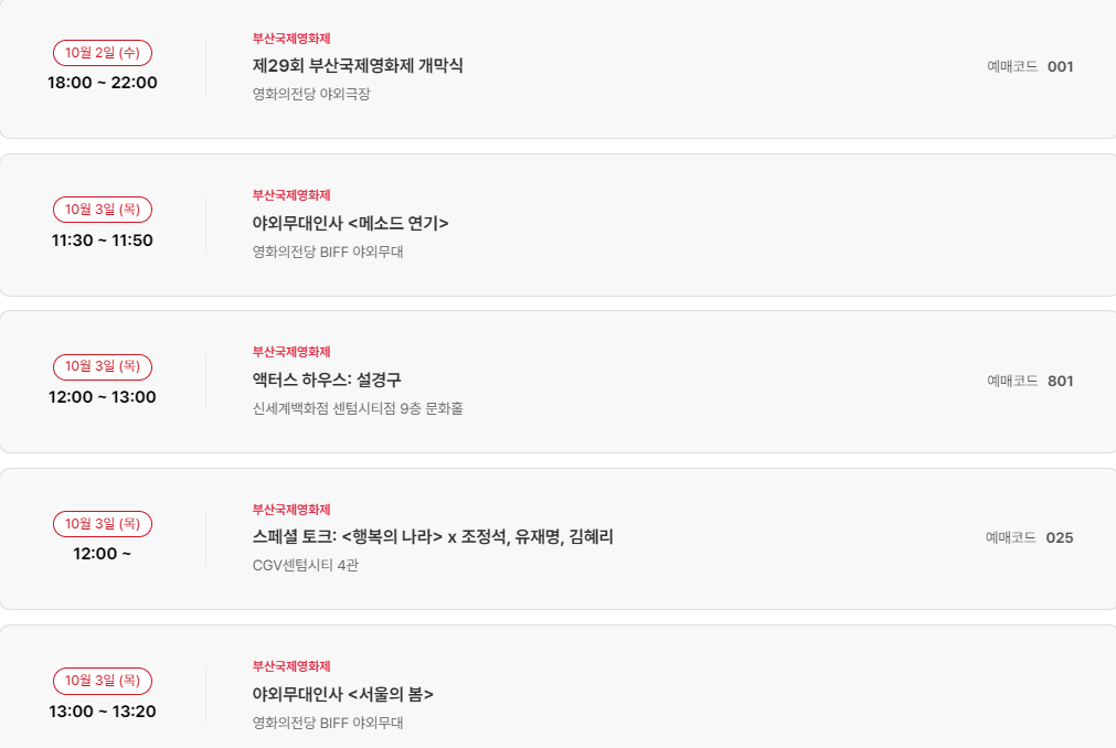 부산국제영화제 일정 날짜 상영시간표
